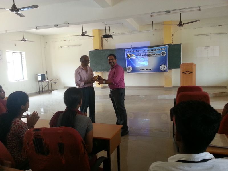 Technical Talk on “Aircraft Maintenance and Job opportunities in Aeronautical Engineering” - The Department of Aeronautical Engineering and AMARA Association, Srinivas Institute of Technology, Valachil, Mangaluru, organised a Technical Talk on “Aircraft Maintenance and Job opportunities in Aeronautical Engineering” on 26/04/2017 by Prof. Ramesh Kumar, Department of Aeronautical Engineering, Srinivas Institute of Technology. Professor briefed the students about the importance of Aircraft Maintenance Engineering and Job opportunities in Aeronautical.