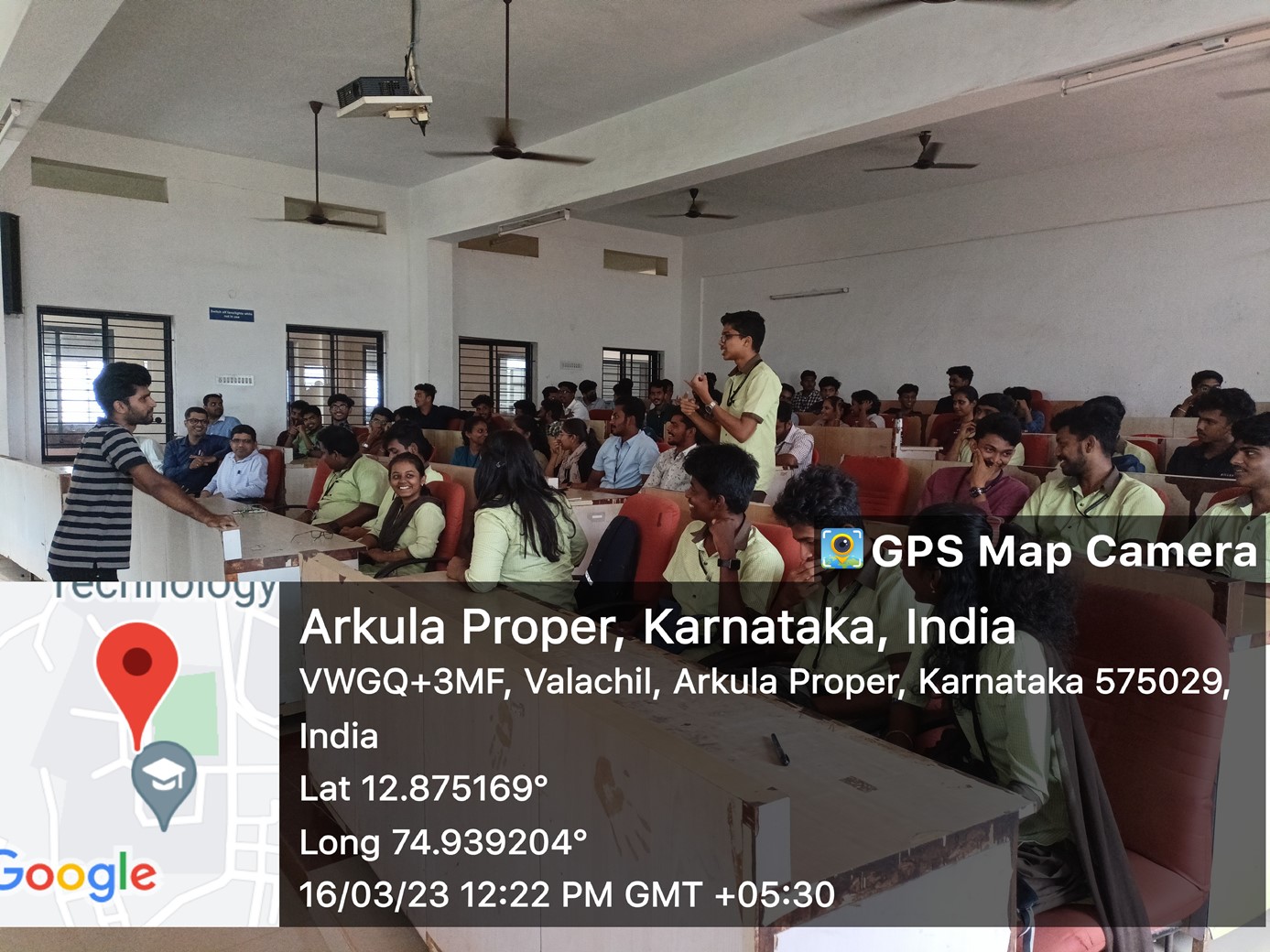 The student Association of Marine Engineering AIMES organized a technical talk on “Career at sea” on 16th March 2023. Mr. Chethan, an alumnus of SIT, currently working as a Marine Engineer with Wilhelmsen ship management Limited was invited as the resource person. Mr. Chethan discussed various career opportunities within the shipping industry and shared his personal experiences as a junior engineer working onboard ships.