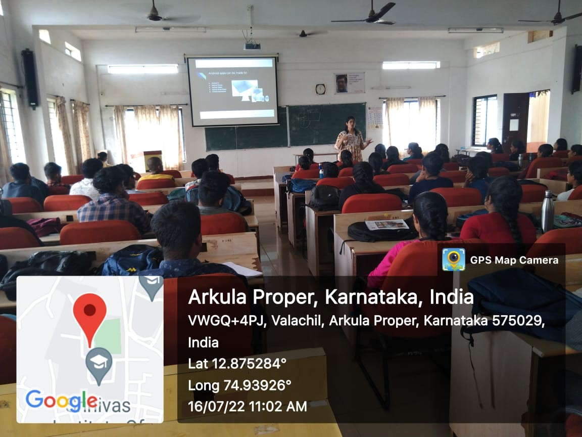 A talk about mobile applications was given by Ms. Prithvi V Shet who is a android app developer on 16-07-2022 arranged by Dr. Shashidhar Kini K, Head of the Department of MCA and Mr. Rajesh Naik, Faculty Advisor of MASM.