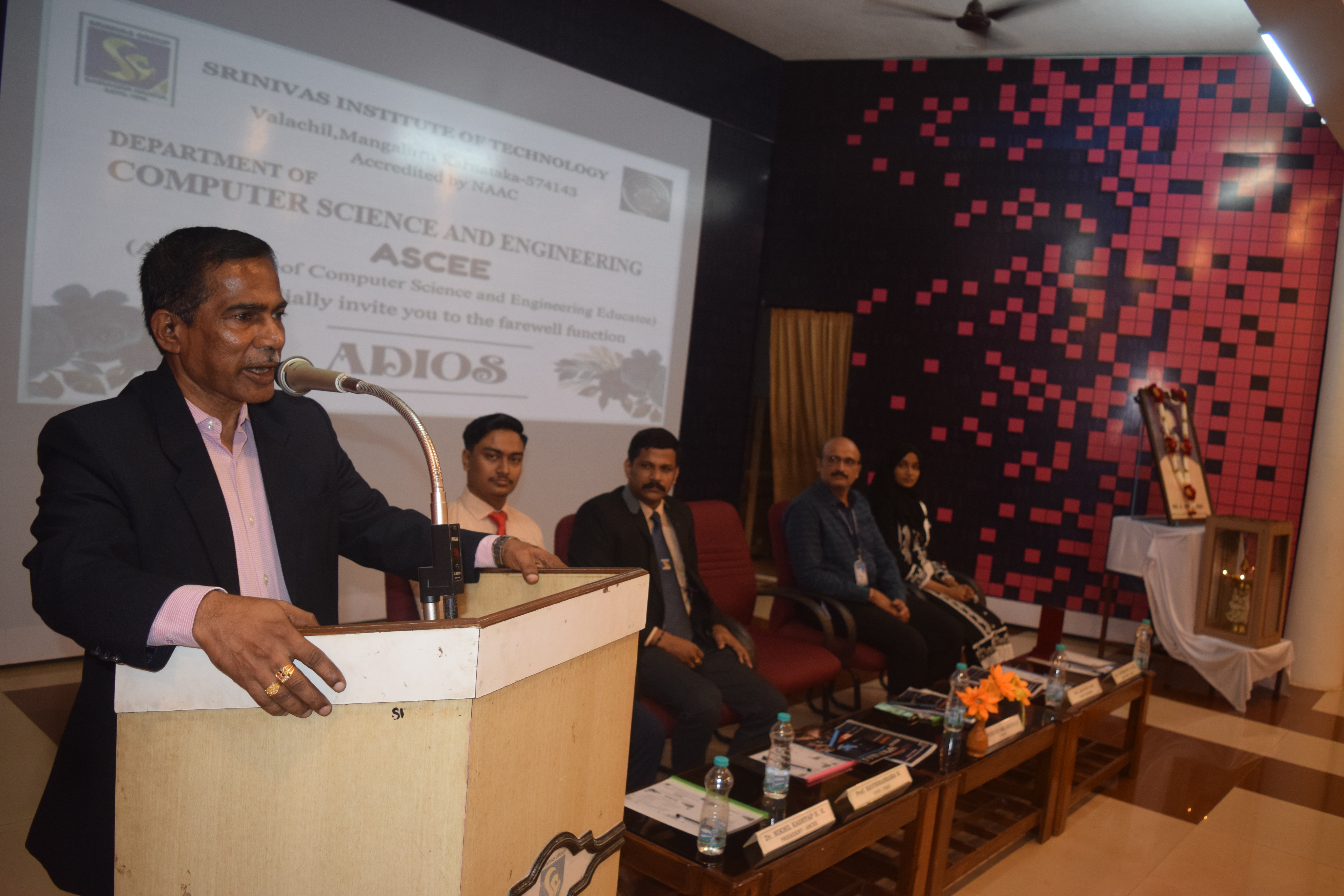 The Farewell and Valedictory function of CS&E student association ASCEE 2022-23 was held at Srinivas Institute of Technology, Mangaluru on 20th May 2023 by the department of Computer Science and Engineering. Dr. Shrinivasa Mayya D, Principal of the college, in his presidential address congratulated all the final year students for successfully completing their graduation in the college and urged them to use their life skills efficiently and effectively on stepping into a new competitive world which is full of opportunities.