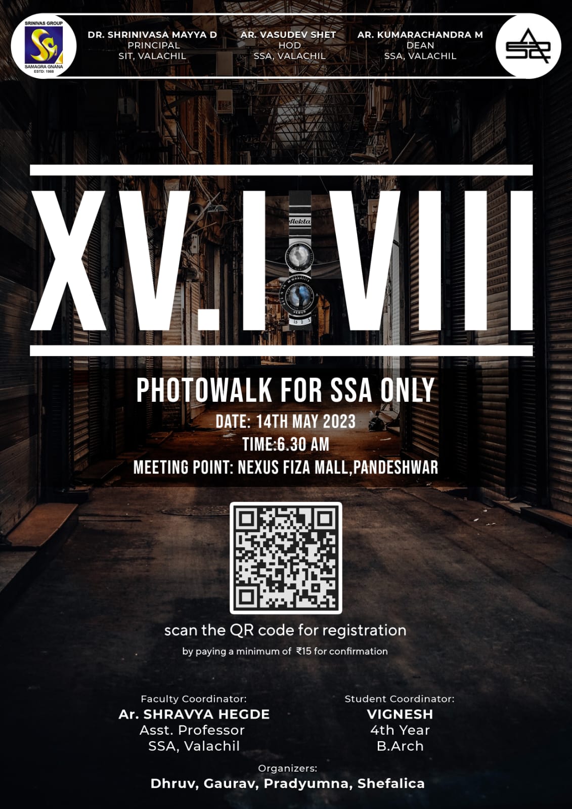 Srinivas School of Architecture SSA, organized a photo walk event “XV. IIVIII”, to unravel the architecture memories and explore Old Mangalore. The event was planned and coordinated by Ar. Shravya Hegde and Vignesh I V, Student Coordinator on 23’rd May 2023.