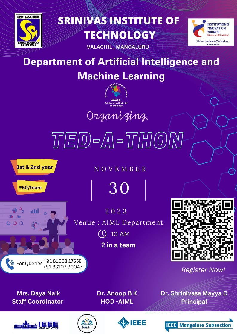he TED-A-THON, a technical presentation competition held at Srinivas Institute of Technology, Mangaluru, on November 30, 2023.