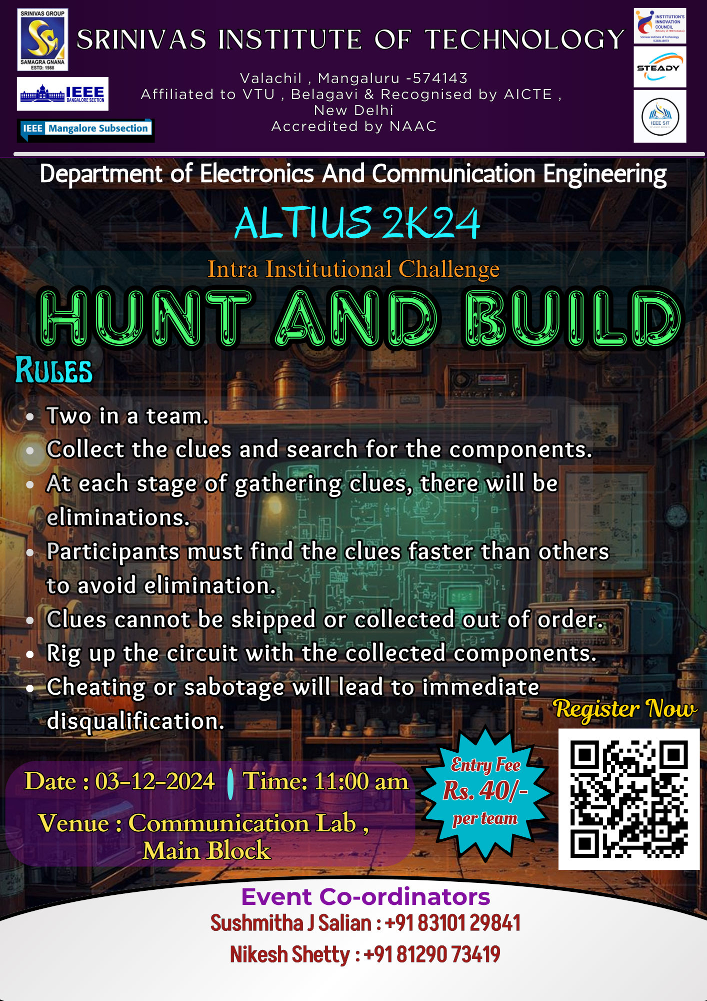 Department of Electronics and Communication Engineering SRINIVAS INSTITUTE OF TECHNOLOGY Valachil, Mangaluru HUNT AND BUILD The Department of Electronics and Communication Engineering at Srinivas Inst...