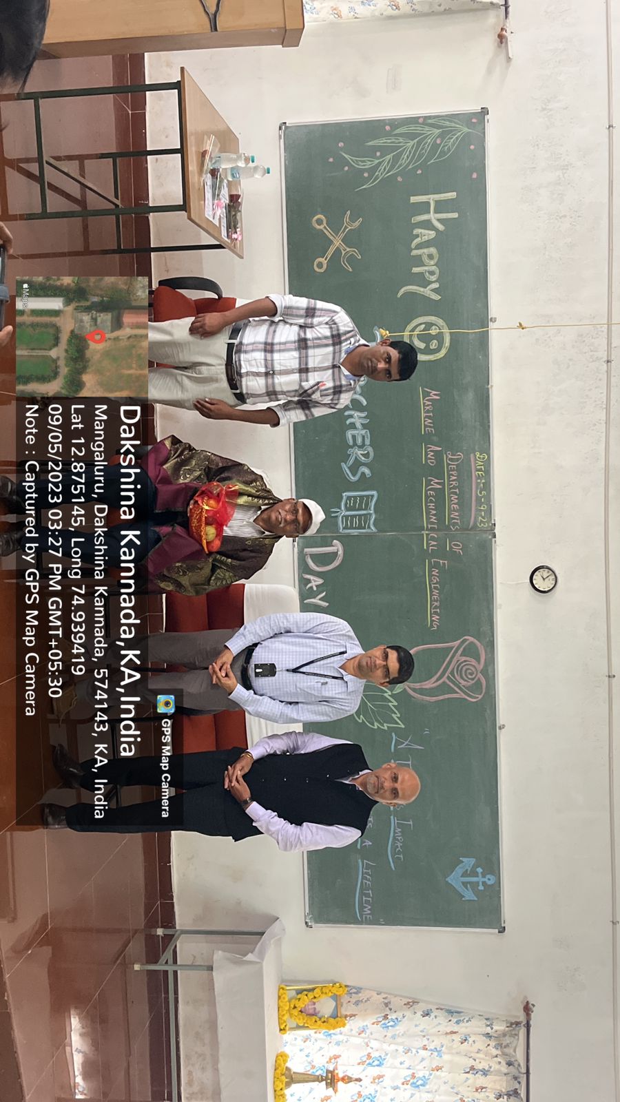 The Department of Marine and Mechanical Engineering celebrated Teachers' Day on September 5th, 2023. The program commenced with an invocation by Mr. Rahul MV, 4th Sem Marine, Mr. Prithuesh P B 4thSem marine, delivered a heartfelt welcome address and Ms.Bhuvana Priya T J 4th sem Marine briefed an introduction to the significance of Teachers' Day.