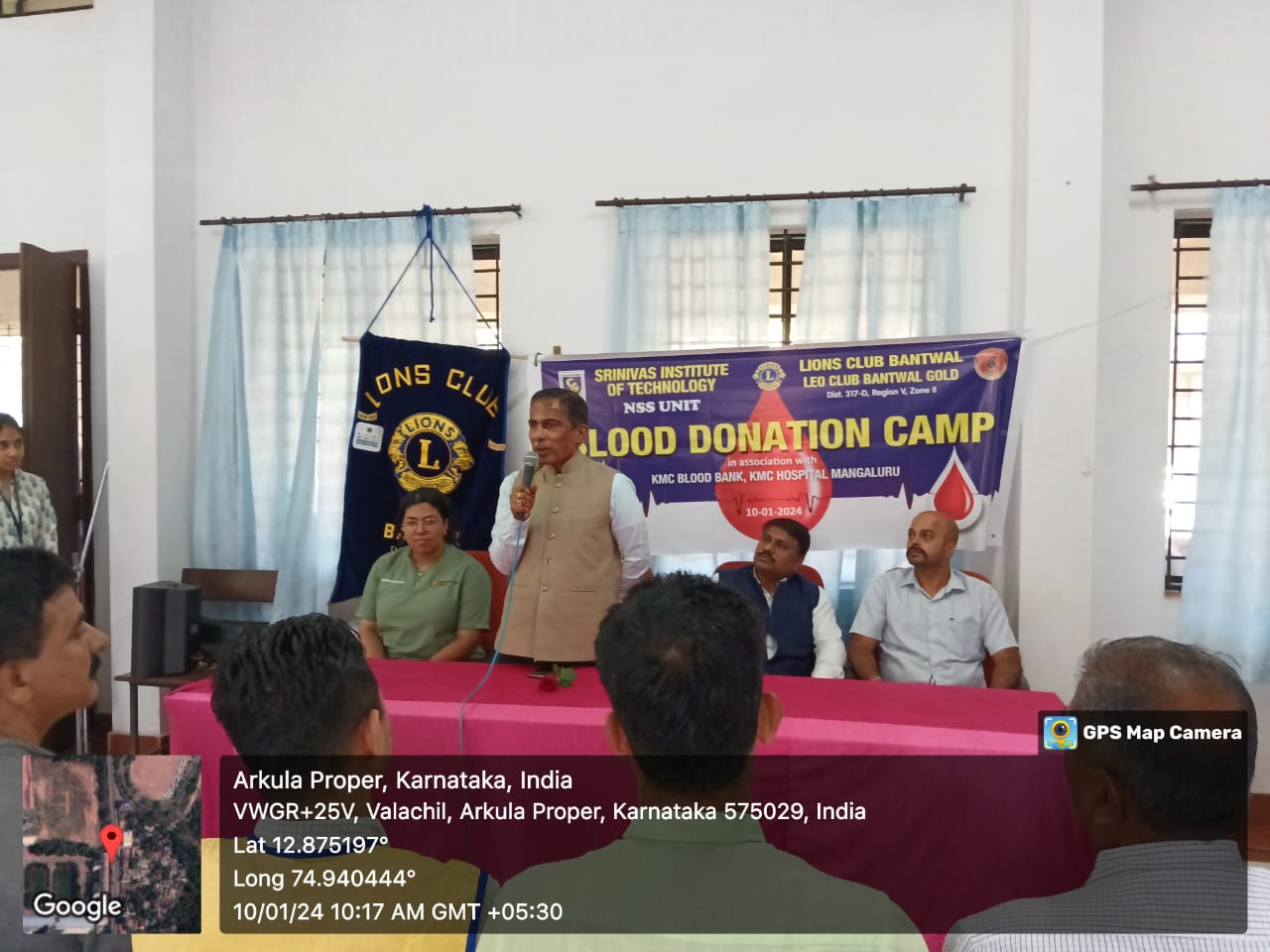 Srinivas Institute of Technology NSS unit in association with Lions Club Bantwal and KMC Mangalore, organized a Blood donation camp on 10/01/24.