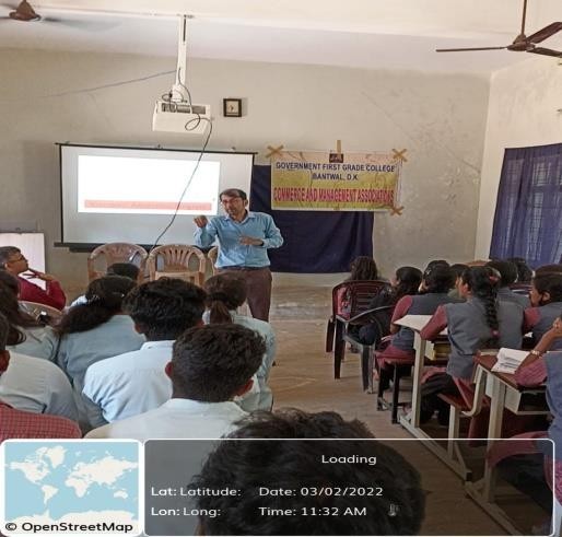 As a part of the MOU with Govt. First Grade College, Bantwal, a Lecture delivered on “Career Guidance” on 3/2/2022.