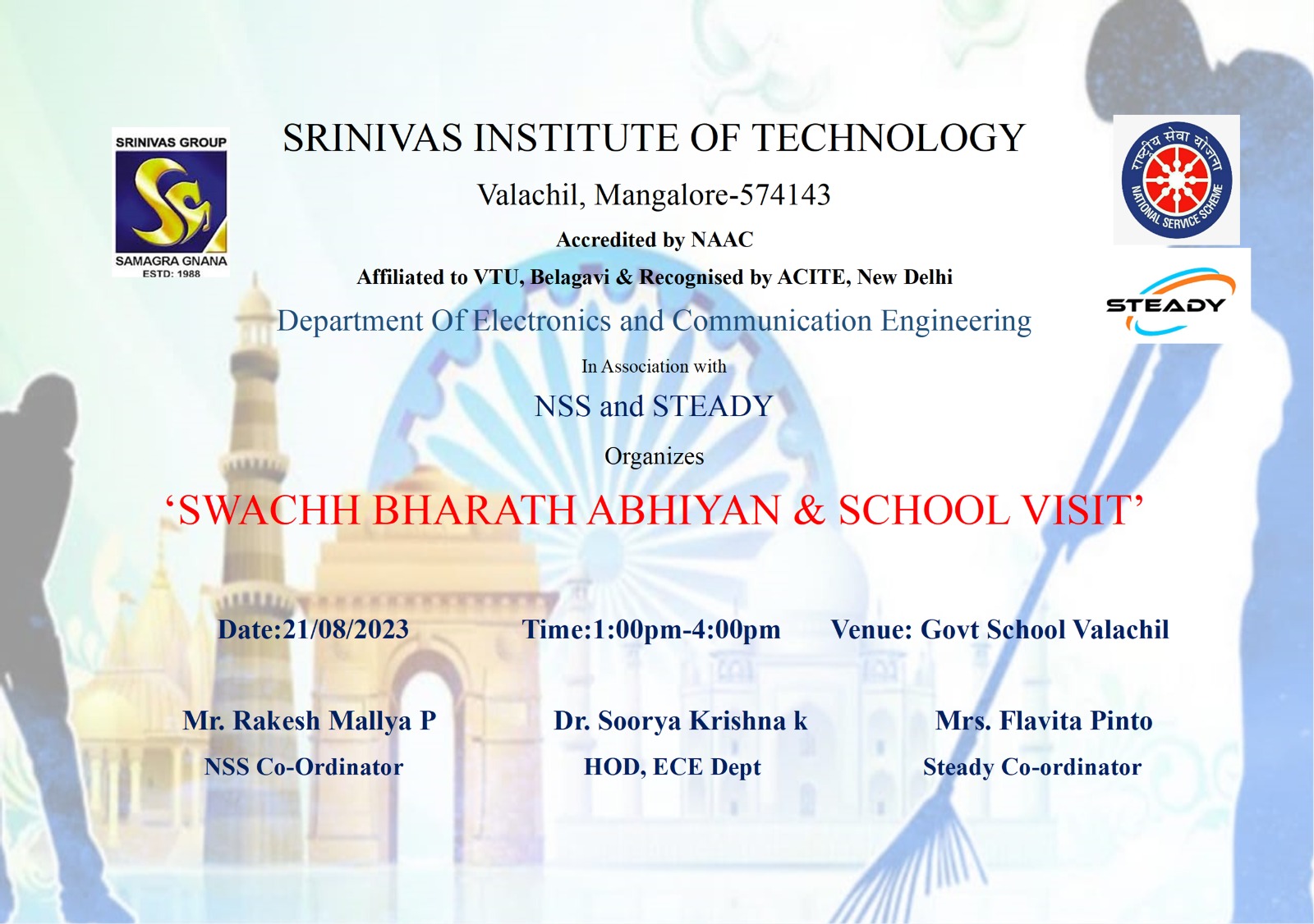 The Department of Computer Science and Engineering NSS organized an event on Swachh Bharat for 3rd year NSS students on 25th August 2023 at outside the Srinivas Institute of Technology, Mangaluru campus.