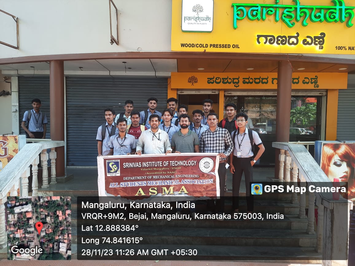 To nurture innovation and an entrepreneurial mindset in second-year students, the student’s association of Marine and Mechanical Engineering at Srinivas Institute of Technology organized a field visit on 28/11/2023, titled “Empowering Innovation and Entrepreneurship”. The students explored PARISHUDH Wood/Cold Pressed Oil Mill and K-Tech Innovation Hub.