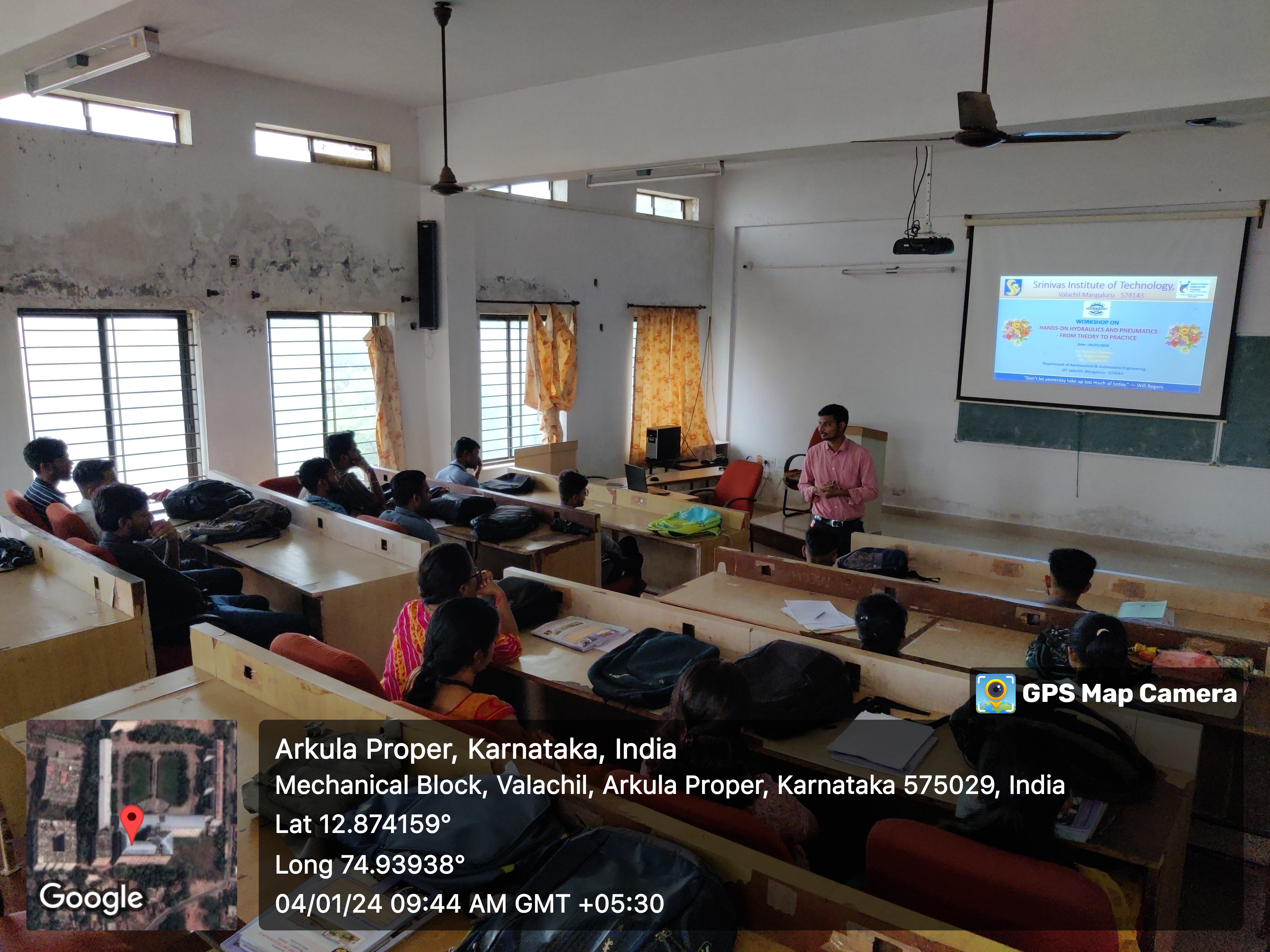 The Hands-on Hydraulics & Pneumatics workshop held on 04/01/2024 at Hydraulics & Pneumatics Lab, Library block, SIT, Mangaluru, provided a comprehensive and immersive learning experience for final year students of Aeronautical engineering.