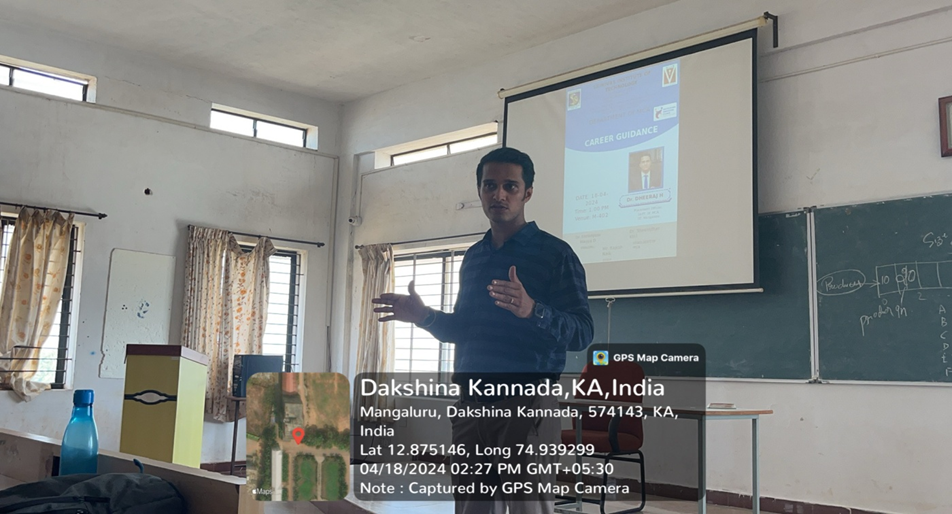 A valuable session was conducted by Dr. Dheeraj H, Placement Officer of our college on carrier guidance which was held on 18-04-2024 at 2:00pm where he gave a talk on the need of preparation for the upcoming placements.