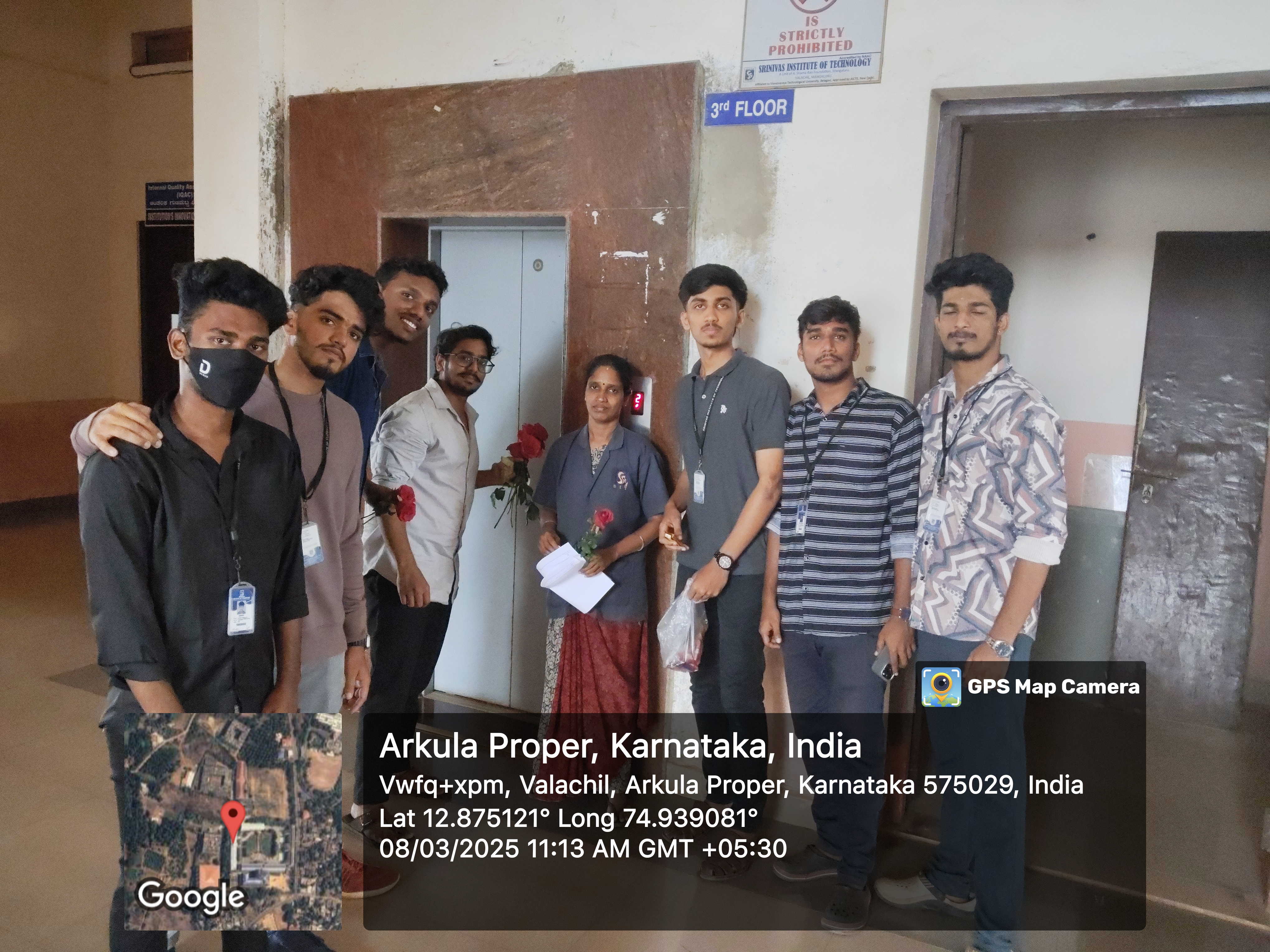 On **March 8, 2025**, the **Women’s Cell** in association with **IIC** organized a **Women’s Day Celebration** at **Srinivas Institute of Technology**. The event featured **Smt. Kamala, Sub Inspector of Police, Rural Police Station, Mangaluru**, as the **Chief Guest**, and was presided over by **Dr. Shrinivasa Mayya D, Principal, SIT**. The session focused on **Personal Safety and Women Empowerment**, inspiring students from **Engineering, MBA, and MCA** programs.