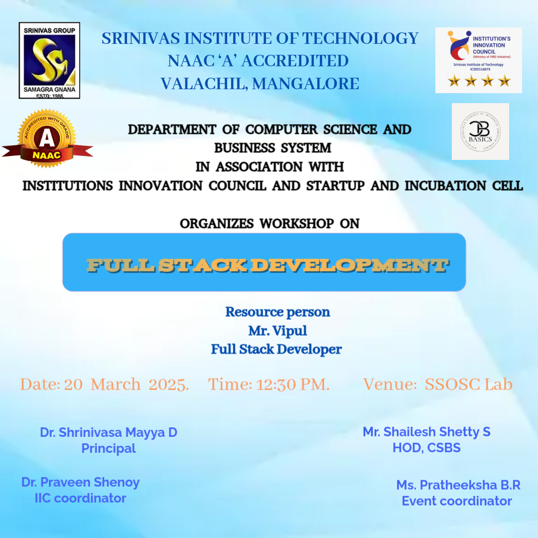 REPORT ON FULL STACK DEVELOPMENT On March 20, 2025, the Department of Computer Science and Business Systems (CSBS) at Srinivas Institute of Technology, Valachil, Mangaluru, in association with Institu...