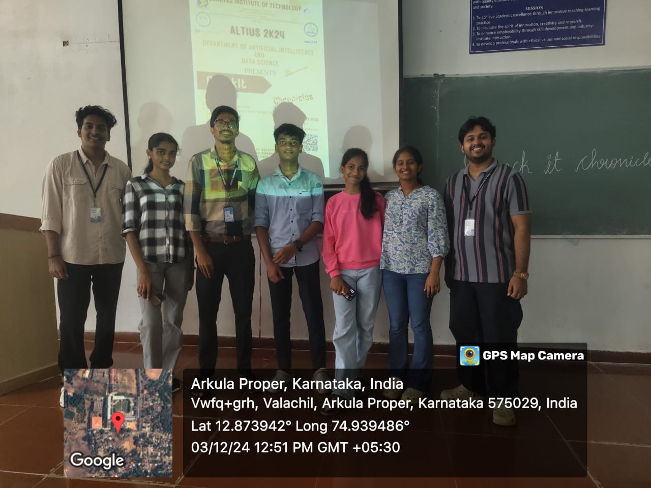 The students of 5th Semester Artificial Intelligence and Data Science organized an inter-department event, Crack it Chronicles, a technical treasure hunt competition during Altius on 3rd December 2024. The event challenged students to crack riddles and find outputs using hints, encouraging critical thinking and teamwork.