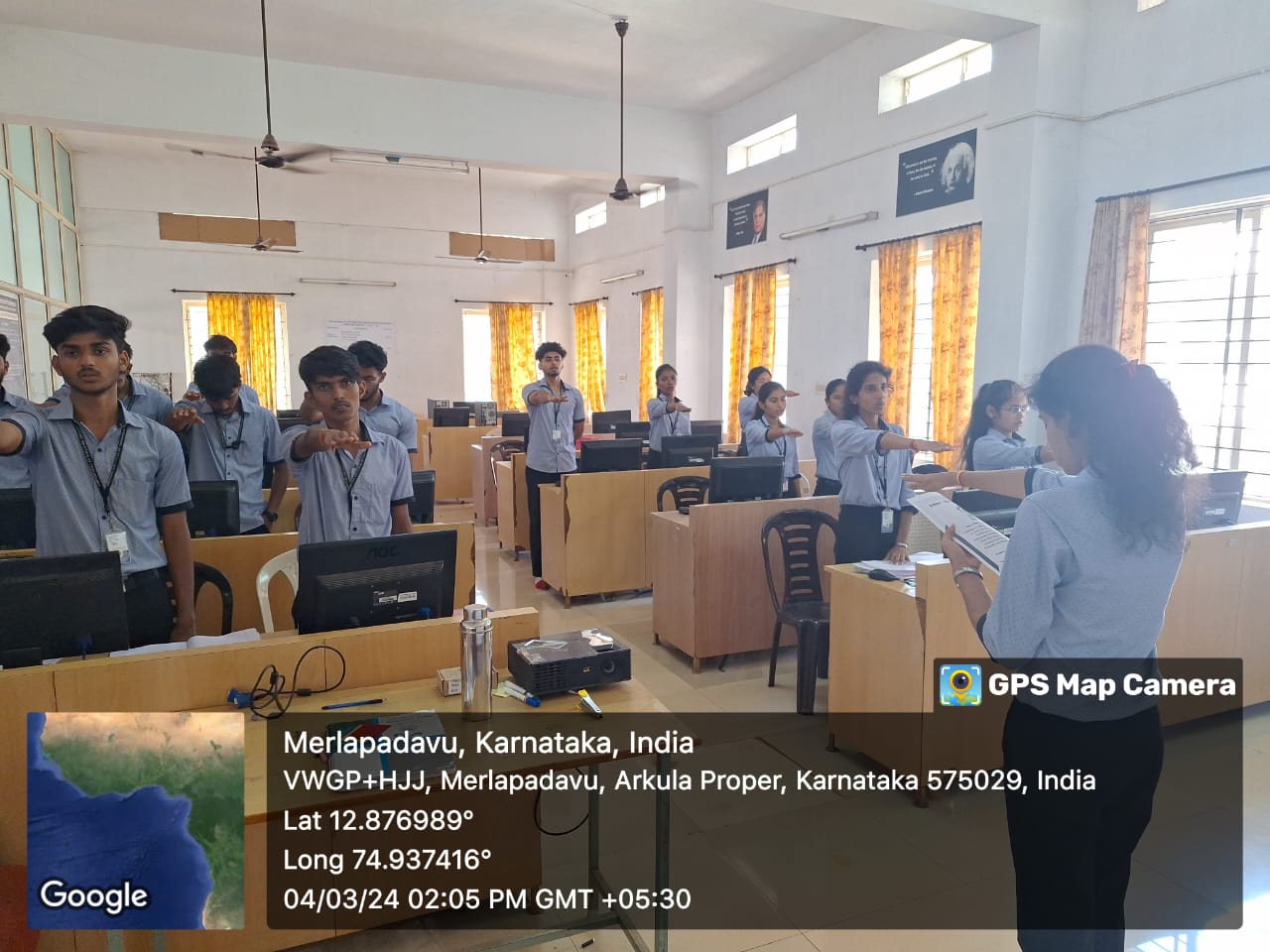 Department of Computer Science and Design of Srinivas Institute of Technology, Mangaluru has taken pledge on “Mera Pehla Vote, Desh Ke Liye” on 04th March 2024 under Association of Computer Science and Design(ACODE). Students pledge to exercise their democratic right to vote, as their contribution towards building a new India. And also encourage Indians to exercise their democratic right to vote. Students will ensure that their valuable vote goes towards developing India and making it stronger. The event was coordinated by Dr. Padmanayana, HOD-CSD and Staff Coordinator Mrs.Rajeshwari R Shettigar along with student members