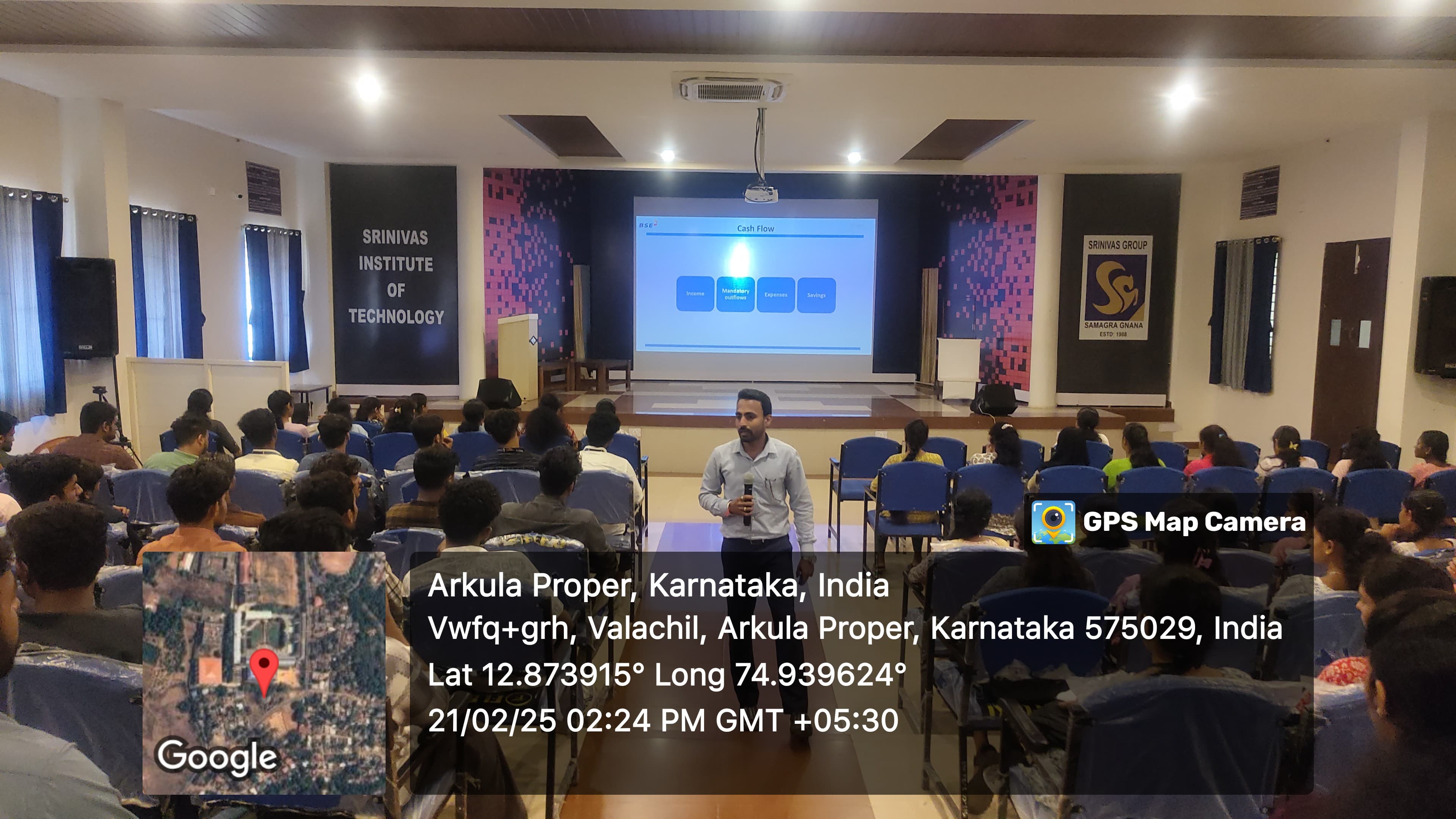 Mangaluru, February 21, 2025: The Department of MBA at Srinivas Institute of Technology, Valachil, Mangaluru, in collaboration with the Institution’s Innovation Council (IIC), organized an enriching session on 'Problem Solution Fit and Product Market Fit'. The session was conducted by S Sadanand Poojary, Founder and Director of 'Chaitanya Investments'. The session was highly engaging and informative, introducing attendees to core concepts of Problem-Solution Fit and Product-Market Fit. The speaker emphasized how identifying the right problem and designing appropriate solutions are crucial steps in the product development lifecycle. He further elaborated on the importance of aligning products with market needs to ensure success. Participants gained practical insights into tools and techniques for achieving Problem-Solution and Product-Market Fit. The discussion covered strategies such as customer interviews, market research, prototyping, and surveys, helping attendees understand real-world applications of these concepts. The session was a great success, as evidenced by the positive feedback from participants. Attendees reported enhanced confidence in applying the acquired knowledge to real-world business challenges. The session not only deepened their understanding but also equipped them with valuable, actionable skills for product development and market alignment.
