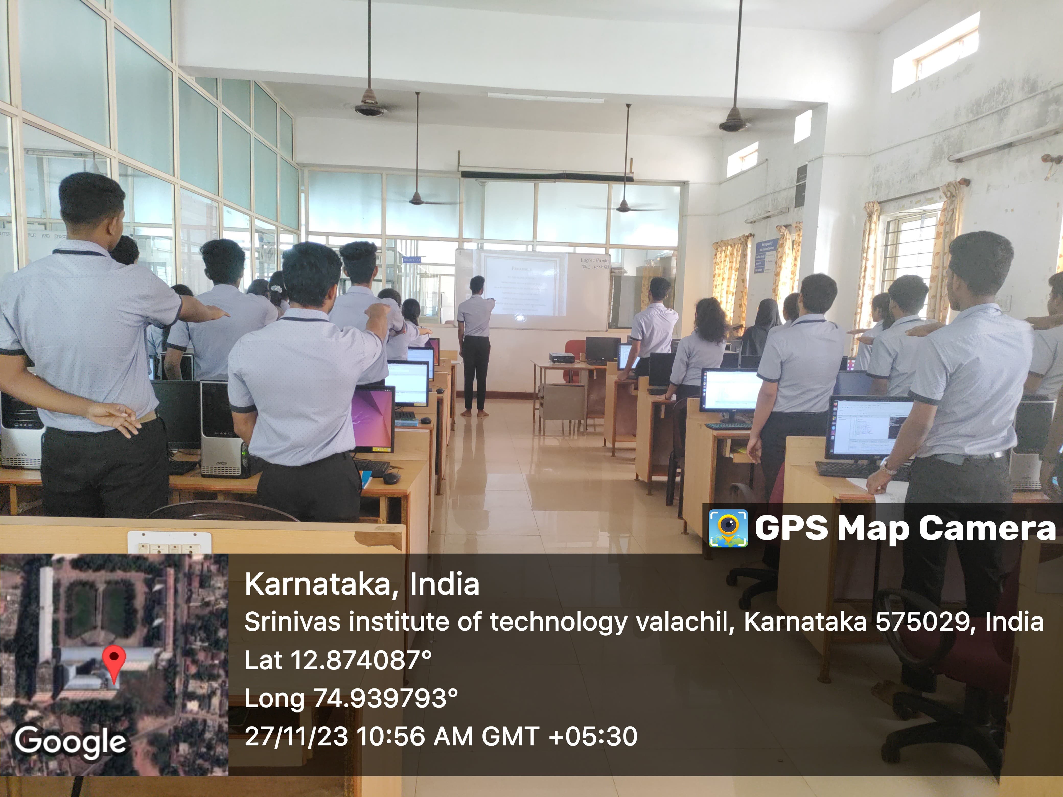 Indian Constitution is the supreme law of the land. It gives an elaborated framework defining fundamental principles, powers and duties of the governmental institutions and citizens. It establishes constitutional supremacy and was adopted by the Constituent Assembly on 26 November 1949 and came into effect on 26 January 1950. To commemorate this event, 26 November is celebrated as Constitution Day. The Department of Computer Science and Engineering, organized a pledge taking ceremony to celebrate the Constitution Day. The pledge was administered by 3rd Semester NSS student member. All the 3rd semester students undertook the pledge on account of Constitution Day on 25th November 2023 at Srinivas Institute of Technology, Mangalore campus. This event was held under the guidance of Prof. Ravishankara K, Head of the Department, CS&E and Prof. Deepthi P. Dsouza, Department NSS coordinator along with Prof. Kavyashree from Department of CS&E.