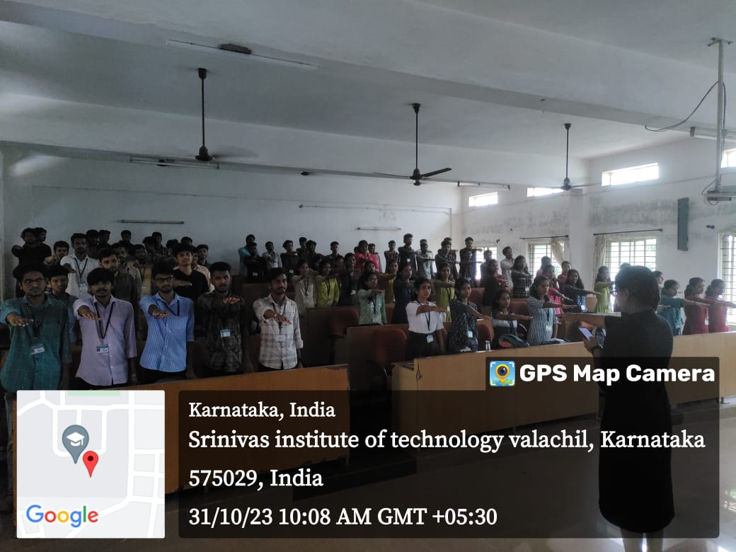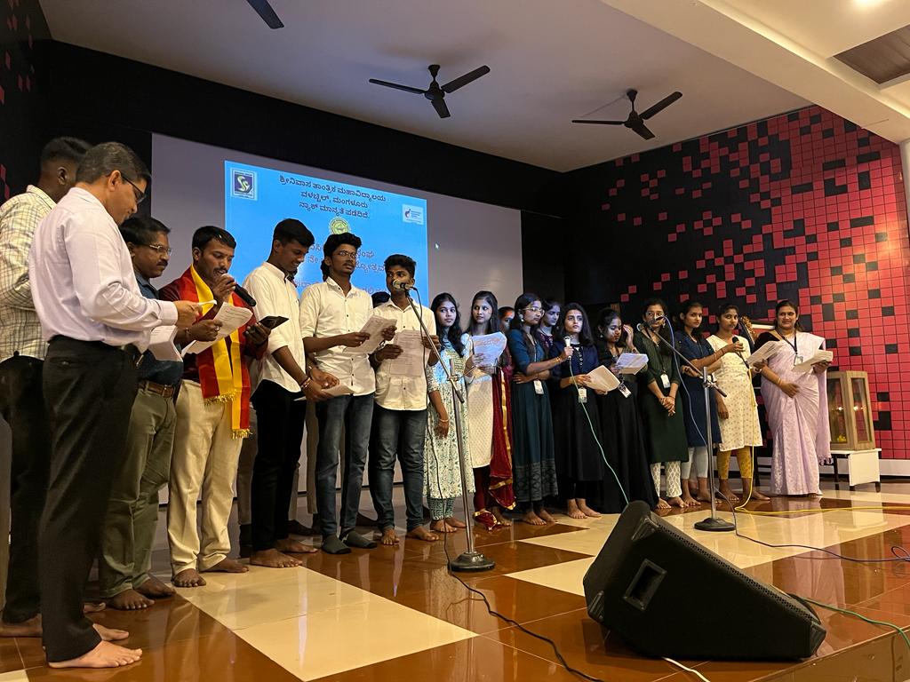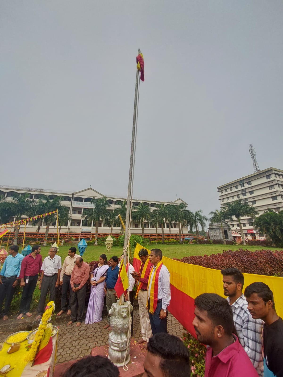 The 68th Kannada Rajyothsava was celebrated with great pomp and splendor at S.I.T Campus, Valachil, Mangaluru on Wednesday 1st November 2023, with a tag line of “Tantrika Neleyalli Kannadada Ale”. Translated this means “Creating Waves with kannada in the domain of engineering and technology”.Dr. Shrinivasa Mayya D, Principal of the college inaugurated the programme by lighting the lamp and showering rose petals on Kannadambe –goddess Bhuvaneshwari-The reigning deity of Karnataka State. The state flag, the Pride of Kannadigas, a feisty one in golden yellow and vermilion was hoisted on the occasion which was followed by a rendition of state and national anthem. Today’s program was celebrated as a “Kannada Sambhrama 50” as the occasion of successful completion of the renaming Mysuru state as Karnataka State. “Hesarayithu Karnataka – Usiragali Kannada” with this tag line 5 different kannada songs were rendered as per the instruction of state Govt. College cultural committee Lalitaranga its SIT Raga- a music club supported for this program.The programme was coordinated by Mr. Sudheendra H.N., assistant professor, department of Mechanical Engineering and coordinator of “AISIRI” Kannada Sangha with the help of “AISIRI” Kannada Sangha members. More than 600 students and staffs (Teaching and Non-Teaching) witnessed the Rajyothsava Celebrations.On this occasion college speaker forum member Mr. Vishal anchored the program. All these beautiful moments were been captured by Creative club SIT.