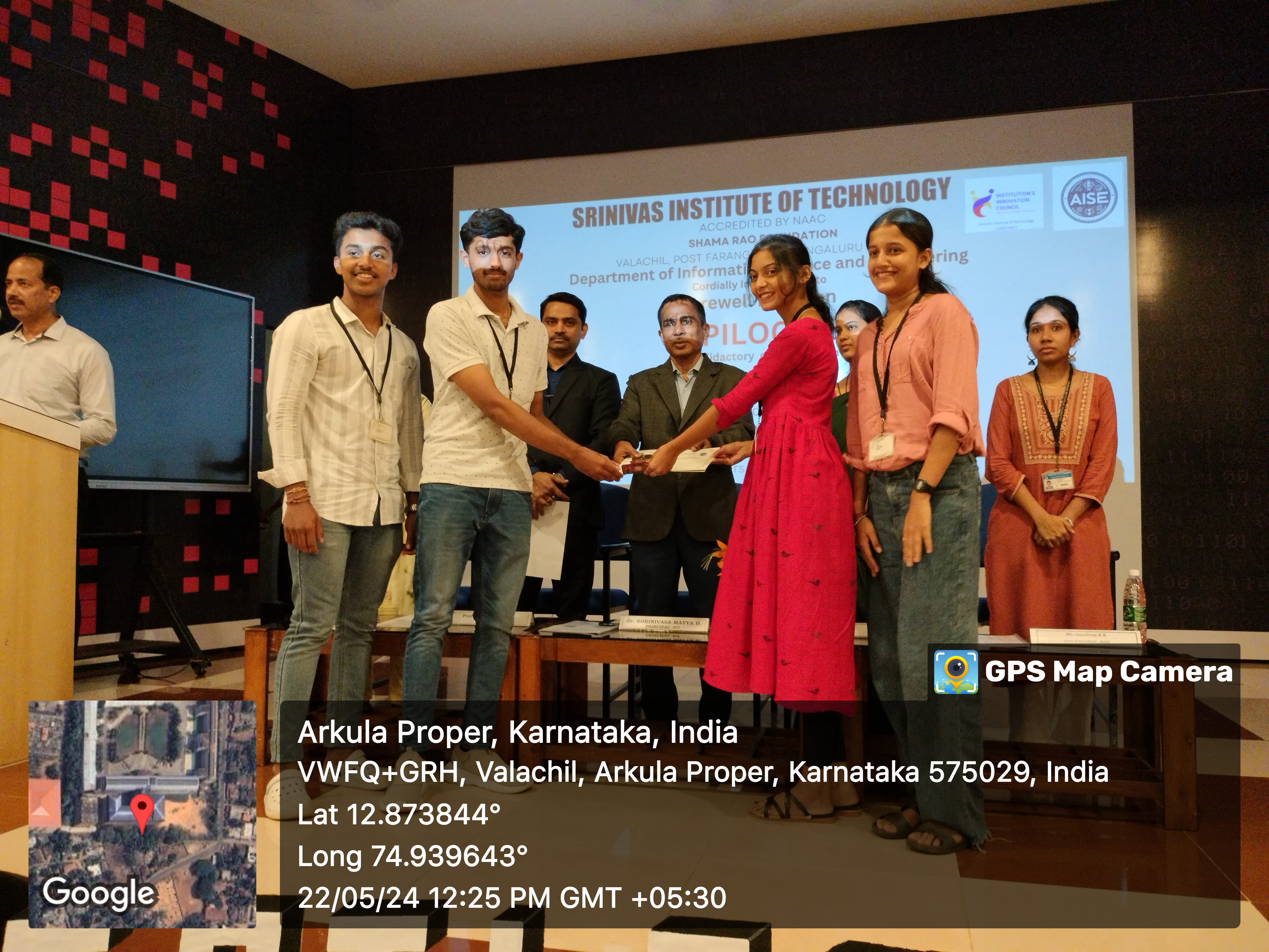 The farewell function Epiloguefor the final year Information Science and Engineering students and Valedictory of Association of Information Science and Educatee (AISE ) 2023-24was organized by the Department of Information Science and Engineering, Srinivas Institute of Technology, Mangaluru on 22May 2024. Dr. Shrinivasa Mayya D, Principal, Srinivas Institute of Technology presided over the occasion. In his presidential remarks, congratulating the outgoing students Principal motivated the students to work hard be responsible in their work, and never stop learning. He also urged the students to gain experience and a successful career.Prof. Sudarshan K, Head, Dept. of Information Science and Engineering, spoke on the occasion he emphasized the importance of education and explained how to use the available opportunities to secure themselves a successful career.During this event, outgoing students shared their wonderful experiences.The annual report of AISE activities for the academic year 2023-24 was presented by Prof. Sowmya Staff Coordinator, AISE. Prize Distribution,Memento distribution,and Project Abstract releasewere carried out by Prof. Athmaranjan K. The entire function was hosted by Ms.Aishwarya of 3rd Sem ISE and Mr. Praneesh, of 3rdSemISE, Jayashree K R of 6th Sem ISE proposed the vote of thanks. The event was conducted successfully with the support of faculties of ISE and Students.