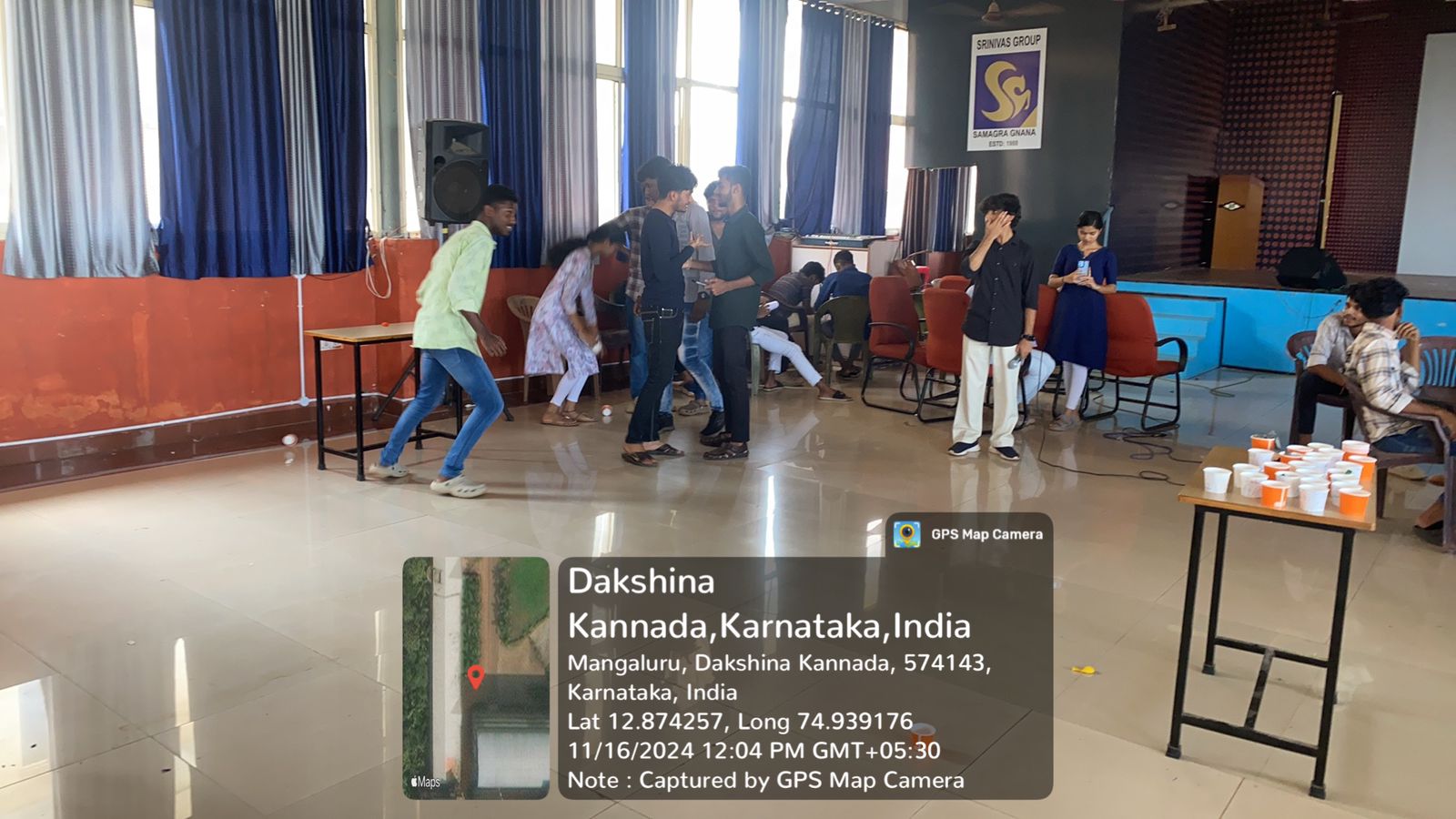 JOYFUL SESSION Joyful session for physics cycle students, conducted on November 9th, 2024, at Srinivas Institute of Technology, Mangaluru, was highly successful for students for gaining enthusiasm, emotional wellness, team building, and cheering their energy. The session was organized to foster engagement and fun among participants. The session was conducted by A1(CSBS) students. The event was co-ordinated by Ms. Shruthi V S from department of computer science engineering. The event featured three exciting activities: 1) QUIZ COMPETITION: Participants enthusiastically answered questions across the various topics in group showcasing their knowledge and quick thinking 2) LOGO GUESSING: This interactive game challenged participants to identify popular logos,sparking excitement and friendly competition 3) TWISTED FOOT: A lively activity that brought laughter and energy, encouraging teamwork and physical coordination. The session was graced by the presence of Dr Suryanarayana, head of the department physics, whose encouragement and presence added prestige and enthusiasm to the event. Overall, the event successfully created a cheerful and collaborative atmosphere, leaving participants motivated and recharged