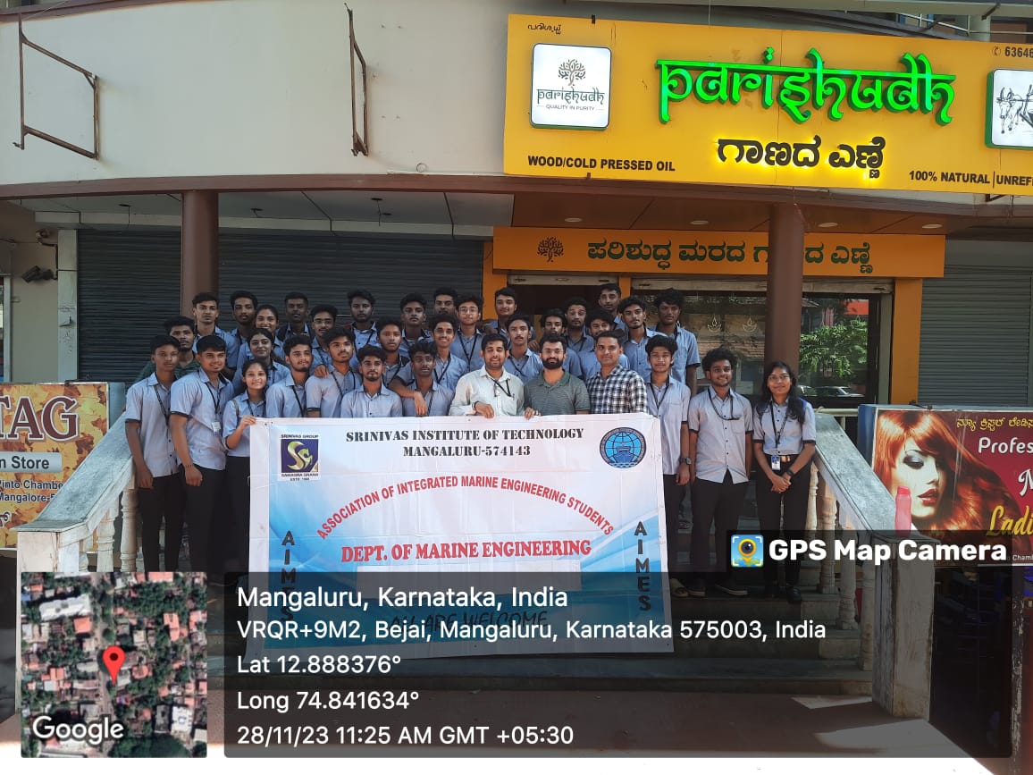 To nurture innovation and an entrepreneurial mindset in second-year students, the student’s association of Marine and Mechanical Engineering at Srinivas Institute of Technology organized a field visit on 28/11/2023, titled “Empowering Innovation and Entrepreneurship”. The students explored PARISHUDH Wood/Cold Pressed Oil Mill and K-Tech Innovation Hub.The visit kicked off at PARISHUDH Wood/Cold Pressed Oil Mill, where Mr. Sagar, an alumnus of Srinivas Institute of Technology and founder/owner of Parishudh Oil Mill, explained wood press oil extraction techniques. He shared valuable insights on wood/cold pressed oil extraction method and starting a new venture, engaging students in discussions about efficiency, power consumption, and materials used.Subsequently, the students visited K-Tech Innovation Hub, where Ms. Akshatha, the hub's manager, highlighted its state-of-the-art facilities and entrepreneurial fundamentals. Mr. Gaurav Kamath, Co-Founder of Micro Degree and Mr. Vilas Shetty from Zilliot Technology delivered inspiring talks on job readiness and innovative products.Dr. Shankar KS, HOD Mechanical Engineering and Dr. Lokesh V, HOD Marine Engineering played crucial roles in guiding students toward the entrepreneurial aspects of mechanical and marine engineering. Dr. Shankar KS emphasized the importance of embracing innovation and an entrepreneurial mindset in today's dynamic world, specifically within the mechanical engineering domain. Dr. Lokesh V, focusing on the marine engineering perspective, highlighted the relevance of these skills beyond academia, particularly in entrepreneurship. The students were urged to assimilate the knowledge gained during the field visit as a catalyst for personal and professional growth. Prof. Sathya Prakash Anekallu, Faculty Coordinator of ASMA and Prof. Sunil Prakash R, Faculty Coordinator of AIMES meticulously organized the program, ensuring a seamless experience. The exposure and field visit sparked creativity and instilled an entrepreneurial mindset among the students.As the students recommence their academic pursuits armed with newfound knowledge, it is anticipated that these experiences will serve as a catalyst, inspiring them to conceive innovative solutions and approach entrepreneurship with confidence.