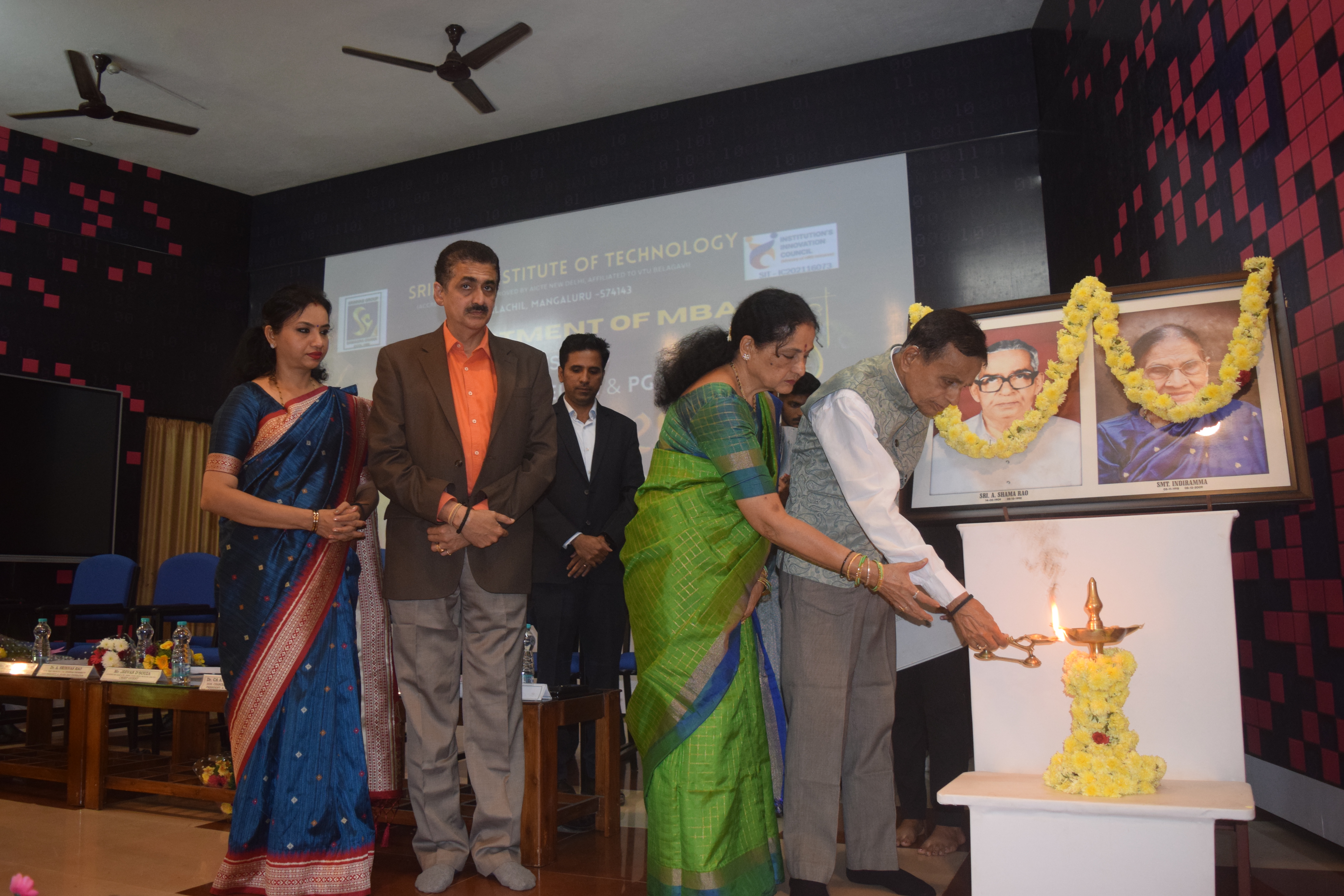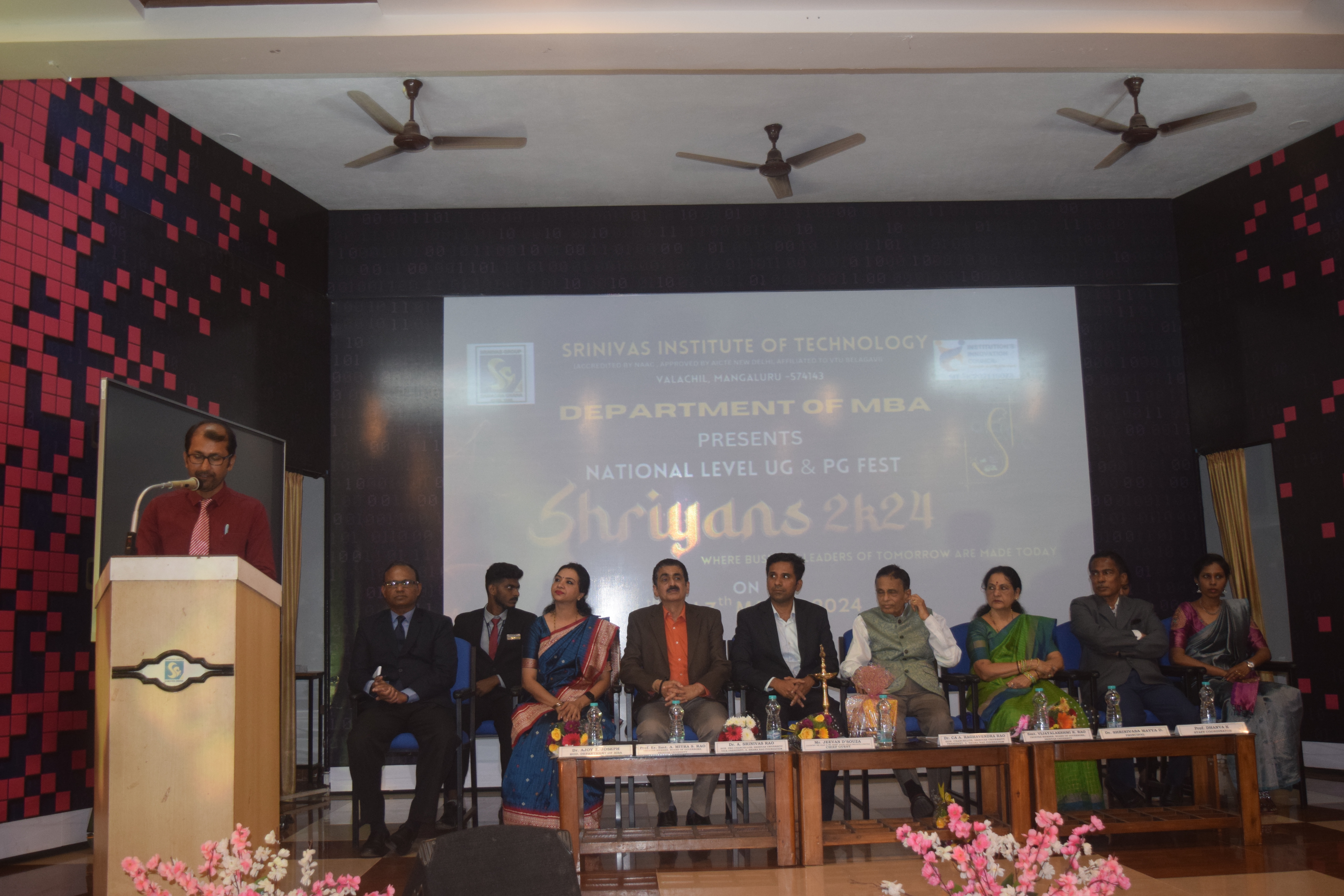 Two days National Level Management fest Shriyans-2024 was organized by MBA department of Srinivas Institute of Technology, Valachil Mangalore on 06th and 07th March 2024. The two-day fest was inaugurated by Mr. Jeevan D’souza country HR lead and Sr HRBP-India EGDK India private limited. Speaking on the occasion he emphasized about the management skills that every management student should possess. His advised the students to make use of all the opportunities that come their way, so that they can excel in their future career. The formal function was inaugurated by lighting the lamp by the dignitaries on the dais along with some participants. More than eight hundred students from various business schools and UG colleges covering different parts of Karnataka and neighbouring states are participating in this management fest. Dr. CA A Raghavendra Rao, Chancellor, Srinivas university, President of A Shama Rao Foundation, Mangaluru presided over the function. In his presidential address he motivated students to put their best efforts in all the activities and he also wished them to win more prizes. Dr. A Srinivas Rao, Pro - Chancellor, Srinivas University and Vice President of A Shama Rao Foundation, Mangaluru, Smt. A Vijayalaxmi R Rao trustee member- board of governors, Smt A. Mithra S Rao trustee member- board of governors Srinivas University, Secretary of A Shama Rao Foundation, Mangaluru were the guests of honour. Dr. A Srinivas Rao, addressing the students emphasized the importance of management fests and the rich experience students would gain from participating. Smt A. Mithra S Rao in her address appreciated the hard work and initiatives of the students saying that it’s very important to make people happy and cared for, which will help them reap rich dividends. Smt. A Vijayalaxmi R Rao graced the occasion. Dr. Shrinivasa Mayya D, Principal, Dr. Ajoy S Joseph, HOD of MBA Department, Prof.Dhanya K, staff Coordinator, Mr.Mohhamed Arfaq and Ms.Prerana Pinto, student coordinators of the management fest were present on the occasion. Ms. Fathimath Mehtab MK and Ms.Moksha were the master of ceremony on the occasion.