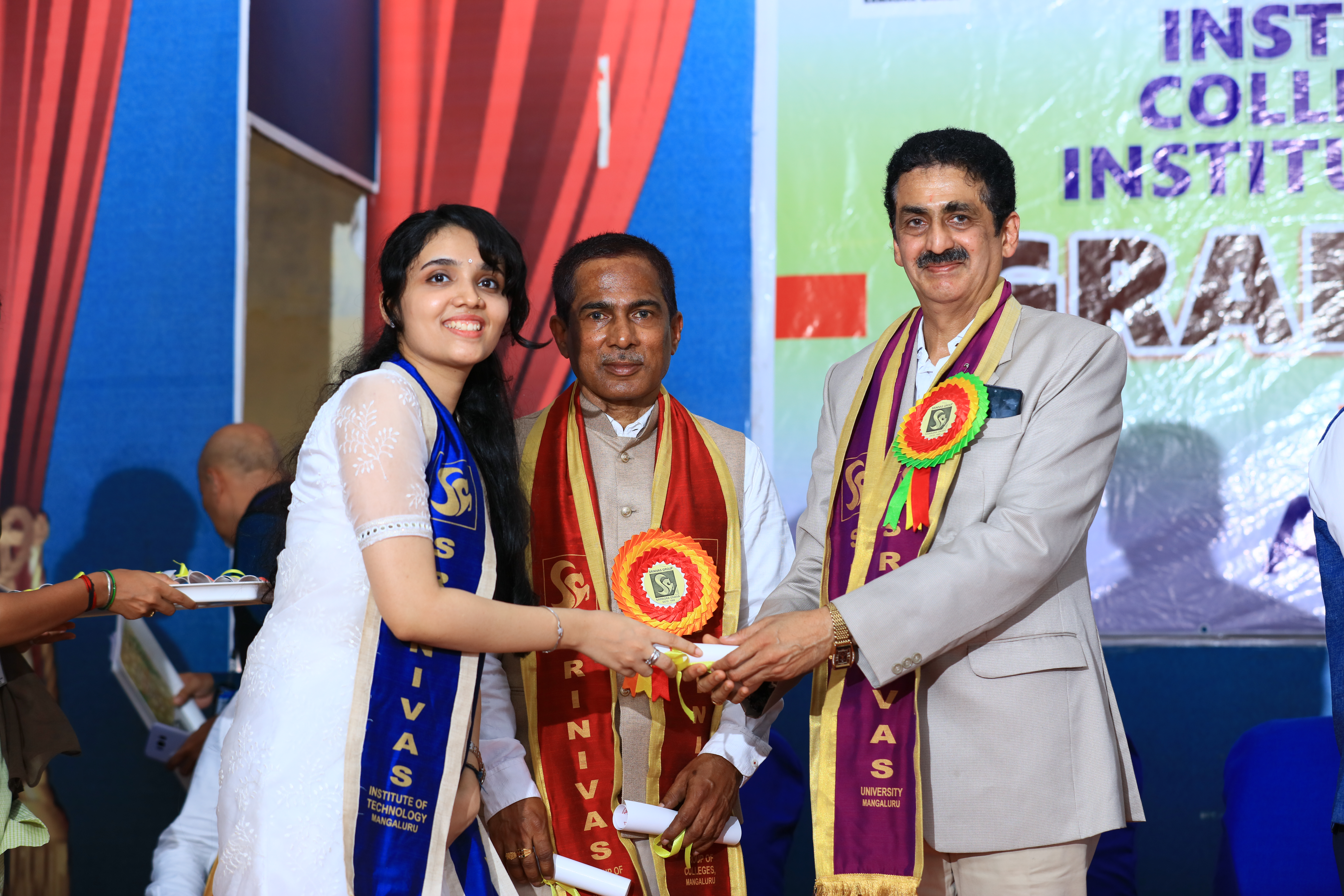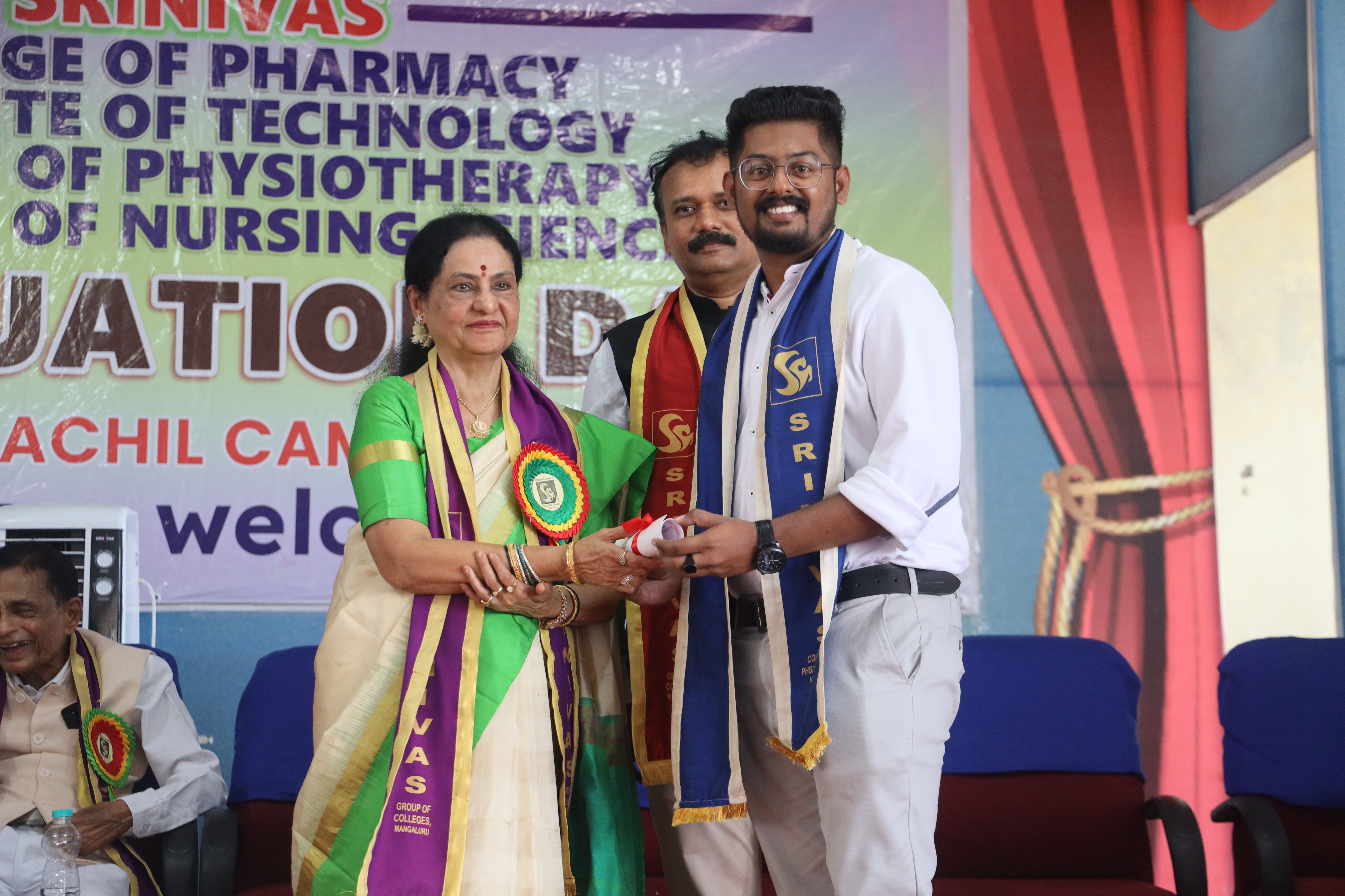 Mangalore: Srinivas Institute of Technology, College of Pharmacy, College of Physiotherapy, Institute of Nursing Science Graduation day held at Valachil campus on April 6th, 2023. Chief Guest Sri. Nagesh Adiga, DGM- HR, Ace Manufacturing System Ltd, Bangalore said, Students, have to give extra effort to learn additional skills so they can face the challenges in future and achieve in their life. Guest of Honour Dr A. Srinivas Rao Honourable Pro-Chancellor and Vice President, A. Shama Rao Foundation congratulated the graduated students for their commitments and hard work to grow in life and successful career. Dr. CA. A. Ragavendra Rao, Honourable Chancellor of Srinivas University and President, A. Shama Rao Foundation in his presidential address said, to build a carrier man should study till the end. Efforts and continued study will help in improving urself. Students are trained here to stand on their own in society and serve them. Srinivas University Board of Governors Trustee members Smt. A. Vijayalakshmi R. Rao and Prof. Er. A. Mitra S. Rao, Principal, SCP &RC Dr. Rajashekar S. , Principal SINS Dr. Pradeepa M., Srinivas University Registrar Dr. Anil Kumar, Srinivas University Development Registrar Dr. Ajay Kumar we're present. Srinivas Institute of Technology Principal Dr. Srinivasa Mayya D. Welcomed the gathering, SCP Principal Dr. Ramakrishna Shabaraya A. Conveyed vote of thanks. Dr. Ambika Mallya and Prof. Stevan Robert Tellies hosted the event.