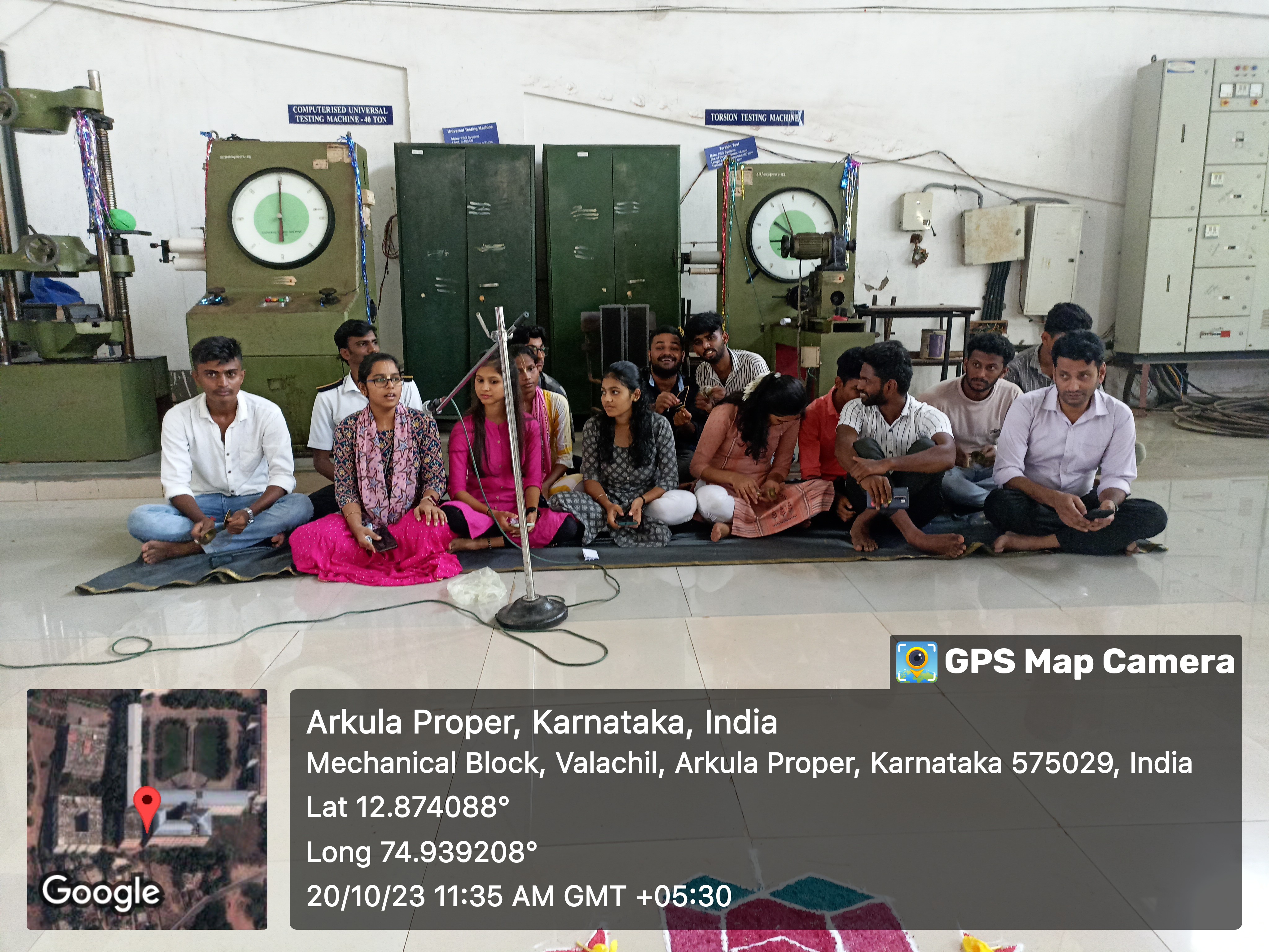 Sharada Pooja and Ayudha Pooja were celebrated in Srinivas Institute of Technology, Valachil, Mangalore, on 20th October 2023. As the Sharada Pooja is celebrated to worship Goddess Saraswathi, the Goddess of knowledge, wisdom and learning. Sharada Pooja rituals were held at the department of Library and Information Science in a beautifully arranged Mantapam. Sweets and Prasadam was distributed after the Pooja. Sharada Pooja was followed by Ayudha Pooja rituals at various departments and in their lab Facilities, as we know that Ayudha Pooja is the day we honor and express gratitude for all the instruments that add meaning to our life. So it’s our tradition to worship the tools and Instruments which are used in the labs of various departments. Mahamangalarathi of the Ayudha Pooja was held in the Workshop of Mechanical Engineering department. The workshop was beautifully decorated by the students of Mechanical and Marine engineering. Staffs and student volunteers were singing the Bhajans in the workshop along with the Pooja rituals by the Archak. Prasadam, Juice and sweets were distributed by the student volunteers after the mangalarathi.The event was successfully organized by Prof. Sathya Prakash A, under the guidance of Principal Dr. Shrinivasa Mayya D.