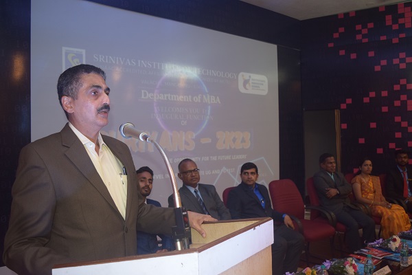 Two days National Level Management fest Shriyans-2023 was organized by MBA department of Srinivas Institute of Technology, Valachil Mangalore on 23rd and 24th May 2023. The two day fest was inaugurated by Mr.Jayaraj K, Branch Manager, Bajaj Capital Ltd., Mangaluru, Speaking on the occasion he emphasized about the management skills that every management student should possess, he said the Indian economy is growing, and students have lots of opportunities, he also inspired students to participate in such events. The formal function was inaugurated by lighting the lamp by the dignitaries on the dais along with some participants of the colleges. More than five hundred students from various business schools and UG colleges covering different parts of Karnataka and neighbouring states are participating in this management fest. Dr.A Srinivas Rao, Pro - Chancellor, Srinivas University and Vice President of A Shama Rao Foundation, Mangalore presided over the function and addressed the gathering. In his address he motivated students to put their efforts in all the activities he also wished them to win more number of prizes. Principal of the college Dr.Shrinivasa Mayya D, Dr.Ajoy S Joseph, HOD of MBA Department, Prof.Ashwini, Prof.Sadananda staff Coordinators, Mr.Rakshith Kumar, student coordinator of the management fest were present on the occasion. Mr. Hemanth Kumar and Miss Prerana were the master of ceremony on the occasion.