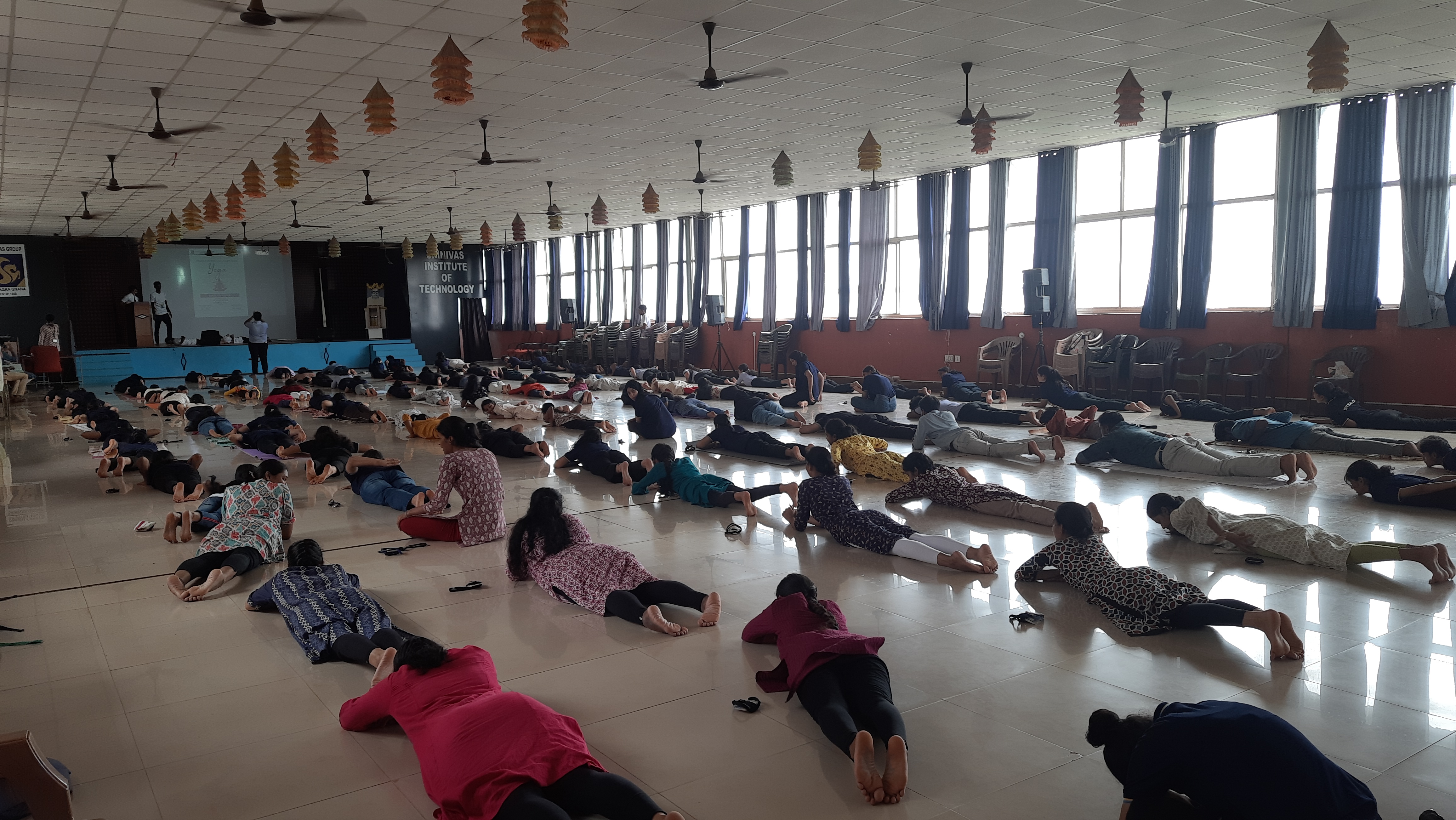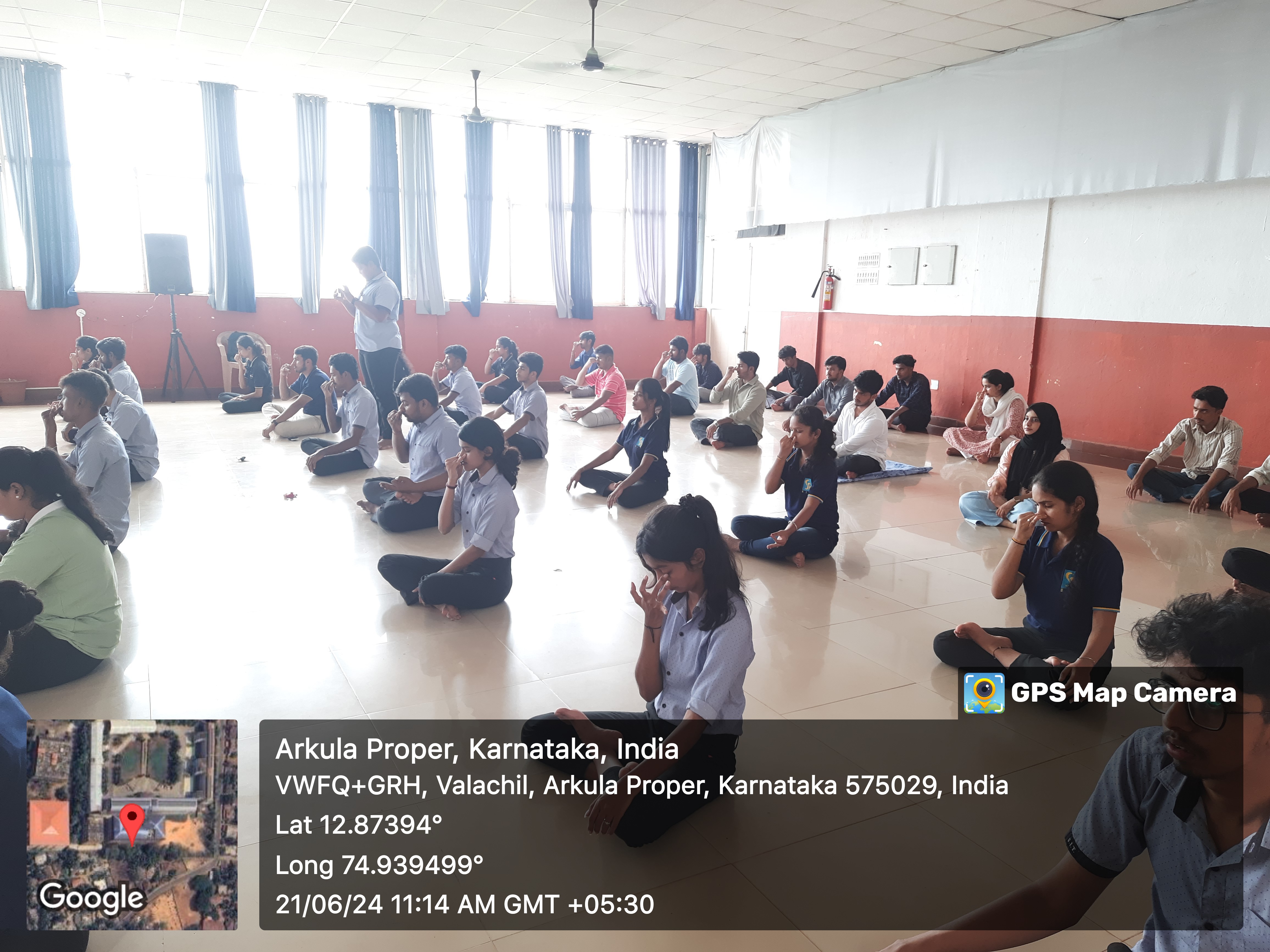 The Department of Computer Science and Design (CSD) at Srinivas Institute of Technology, Mangaluru, organized a vibrant celebration for National Yoga Day on June 21st, 2024, under the Association of Computer Science and Design (ACODE). The event was graced by Mr. Rohith Kotyan, a renowned yoga instructor. Participants, including students, faculty, and staff gathered enthusiastically on the college grounds to engage in a series of asanas, pranayama, and meditation. Mr. Kotyan's expert guidance ensured that both beginners and advanced practitioners could benefit from the exercises, emphasizing yoga's importance for physical health, mental clarity, and overall well-being. The event was coordinated by Dr. Padmanayana, HOD-CSD, and Staff Coordinator Mrs. Rajeshwari R. Shettiga.