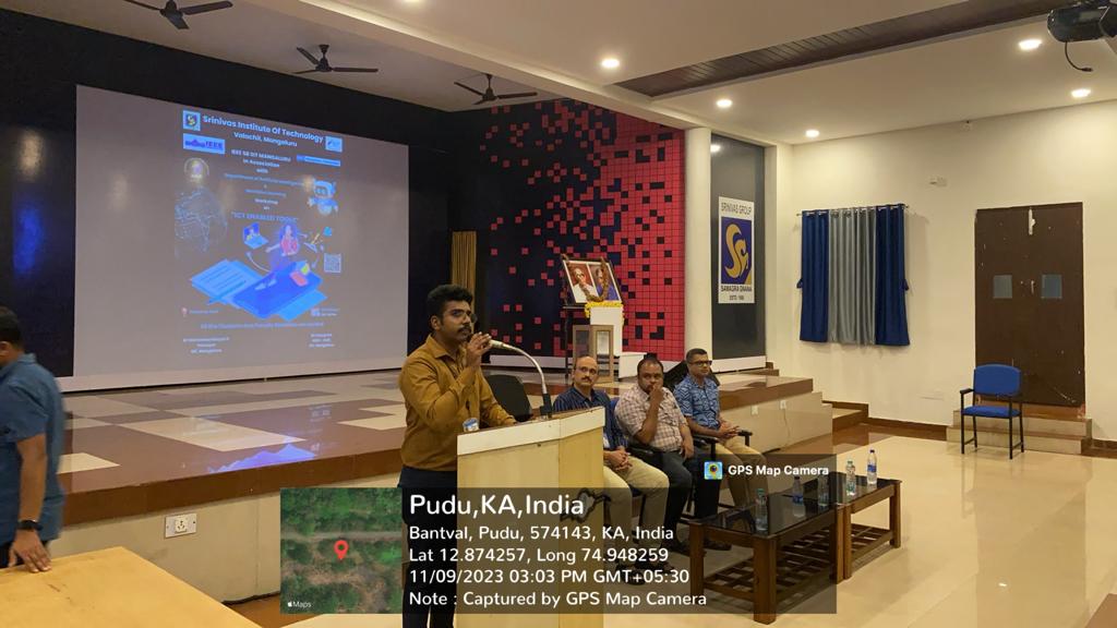 Objectives of the Technical Talk on ICT-Enabled Tools: Date: November 9, 2023 Time: 2:00 PM - 4:00 PM Venue: Seminar Hall, Srinivas Institute of Technology, Mangaluru Resource Person: Mr. Vivek, Department of Marine Engineering Target Audience: Students from the Artificial Intelligence and Machine Learning (AIML) Department at Srinivas Institute of Technology.Knowledge Dissemination: The primary objective was to disseminate knowledge and information about the latest advancements in Information and Communication Technology (ICT) and to provide insights into the practical applications of ICT-enabled tools. Interactive Learning: To facilitate interactive learning experiences by encouraging active participation from students, allowing them to engage with the resource person, Mr. Vivek, through questions, discussions, and the exchange of ideas. Professional Development: The event aimed to contribute to the professional development of students by exposing them to real-world applications of ICT, fostering critical thinking about technology's impact on various industries.Networking Opportunities: To create a platform for students to network with professionals, faculty members, and peers, fostering connections that could be valuable for their academic and future career pursuits.Welcome Address by Mrs. Daya Naik:The event commenced with a warm welcome by Mrs. Daya Naik, setting a positive and enthusiastic tone for the Technical Talk on ICT-Enabled Tools. She expressed her gratitude for the presence of Mr. Vivek as the resource person and highlighted the significance of the topic in the rapidly evolving field of technology.Technical Talk by Mr. Vivek Mr. Vivek, an expert from the Department of Marine Engineering, delivered an insightful and engaging talk on the advancements and applications of Information and Communication Technology (ICT) in the development of tools. He elucidated on the impact of ICT on various industries, emphasizing its role in enhancing efficiency and innovation. The audience, comprised of AIML department students, actively participated in the session, posing questions and contributing to the interactive atmosphere.Vote of Thanks by Ms Rean.