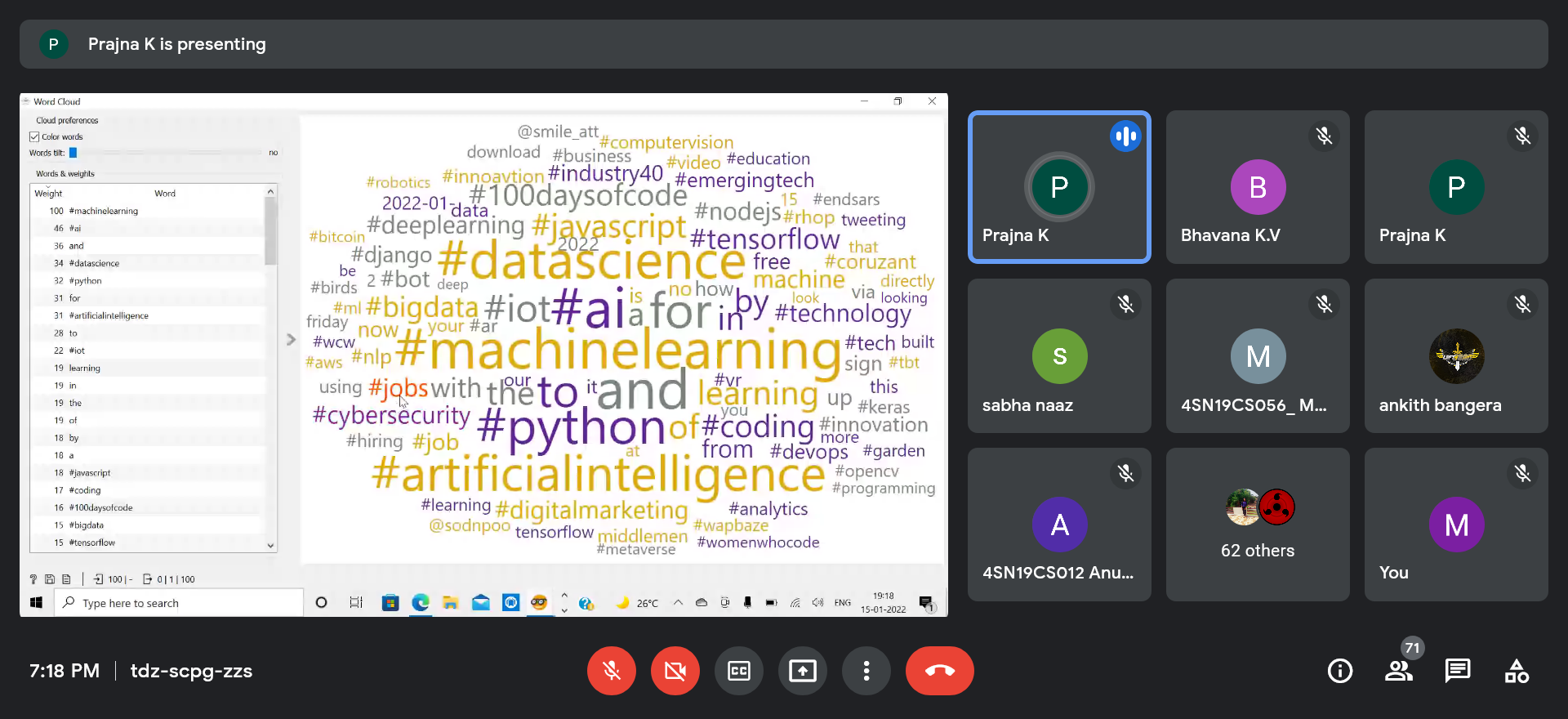 CSI student chapter of Srinivas Institute of Technology, Mangalore (Member No: I01574) has organised Workshop on topic “Big Data Tool “on 15th January 2022. Miss. Prajna, Students of CSE Department, Srinivas Institute of technology, Mangalore, was the resource person. She explained about the use of big data tool in social media analytics. 96 students of CSE department attended the workshop. The whole event was coordinated by Prof. Mohan K, CSI Student Branch Coordinator.