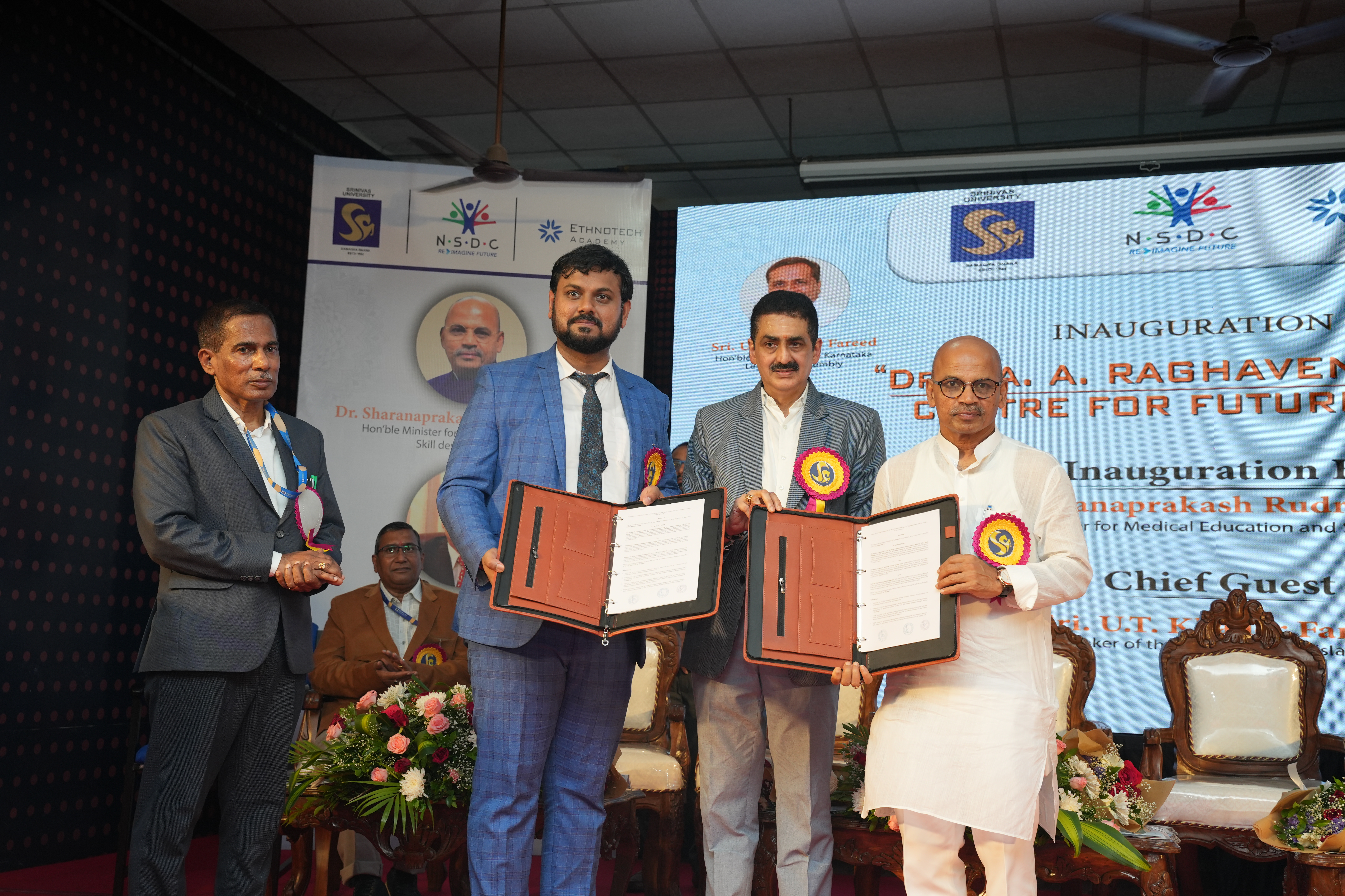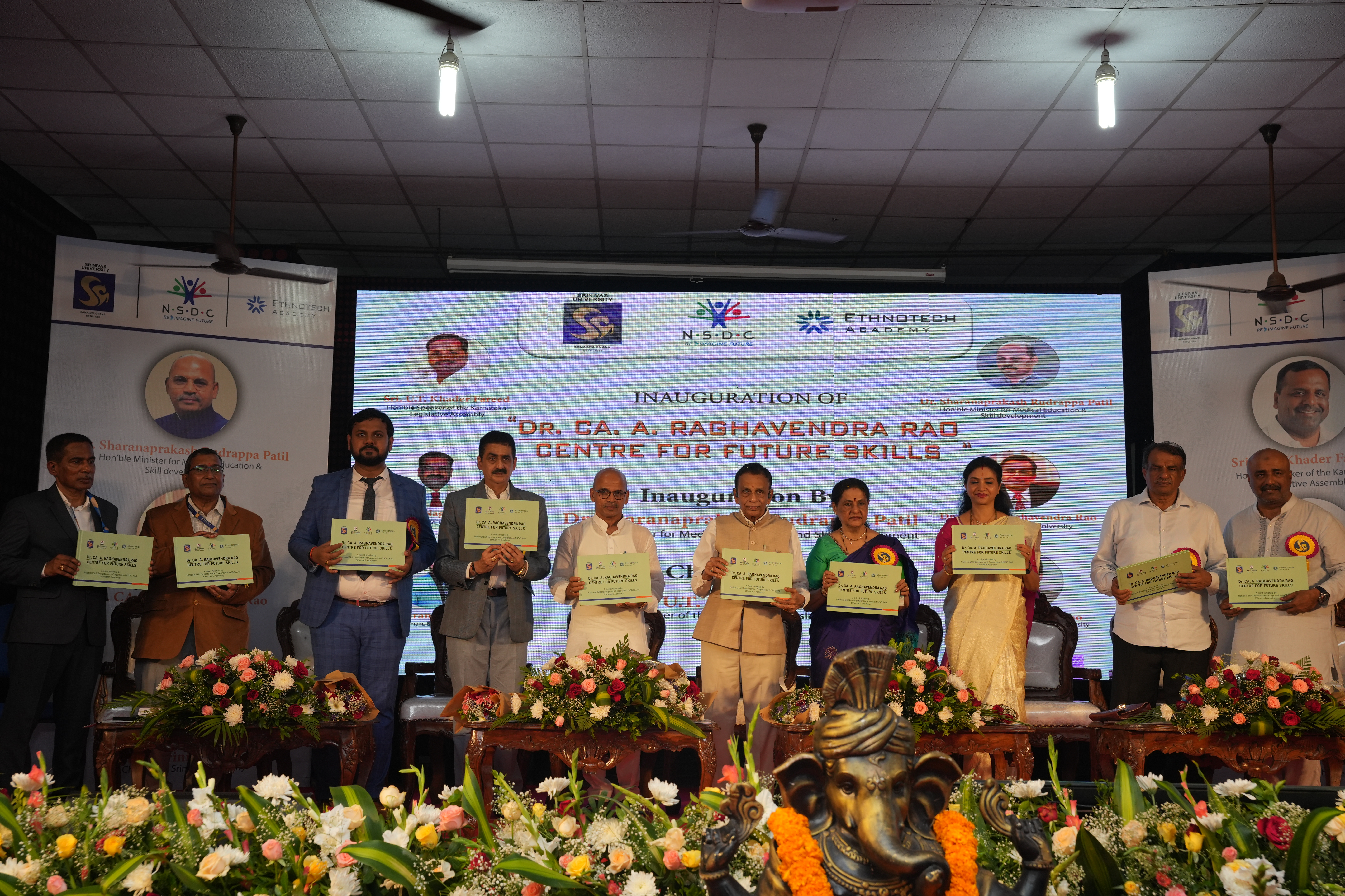 Mangaluru Jun 17 Srinivas University’s Srinivas Institute of Technology SIT has launched an innovative initiative – Dr CA A Raghavendra Rao Centre for Future Skills – in collaboration with the National Skill Development Corporation NSDC and Ethnotech Academy Aimed at equipping students with advanced technical expertise aligned with global industrial trends the centre was inaugurated on June 17 at the university’s Valachil campus The event was inaugurated by the minister for medical education and skill development Dr Sharan Prakash Rudrappa Patil In his address he emphasised the importance of making today’s youth proficient in foreign languages and giving prominence to extracurricular training He stated that only through vocational and skillbased education can significant transformation be brought in the future Officially announcing the commencement of the centre he spoke about the priority that must be given to making students industryready Presiding over the event Srinivas University chancellor Dr CA A Raghavendra Rao offered valuable guidance to the youth stressing the need to achieve selfreliance in the industrial sector of society Addressing the students Srinivas University prochancellor Dr A Srinivas Rao said that professional education and skillbased learning are crucial for life and that this can be achieved through the proper application of technology Dr Kiran K Rajanna head of Ethnotech Academy explained the importance of seizing industrial opportunities for the students The event also saw the presence of Prof Dr Iftikhar Fareed senate member of Rajiv Gandhi University of Health Sciences MLC Manjunath Bhandari and executive president of the Congress committee Vijayalakshmi R Rao and Prof Mitra S Rao trustees of Srinivas Group and Varun Bhatra general manager of NSDC Dr Satyanarayana Reddy vice chancellor Srinivas University Dr Ajay Kumar development registrar Srinivas University were present Dr Srinivas Maiya D principal of SIT and registrar of evaluation at Srinivas University welcomed the gathering Registrar Dr Anil Kumar proposed the vote of thanks The event was compered by Dr Sumana V S and Prof Rashmi