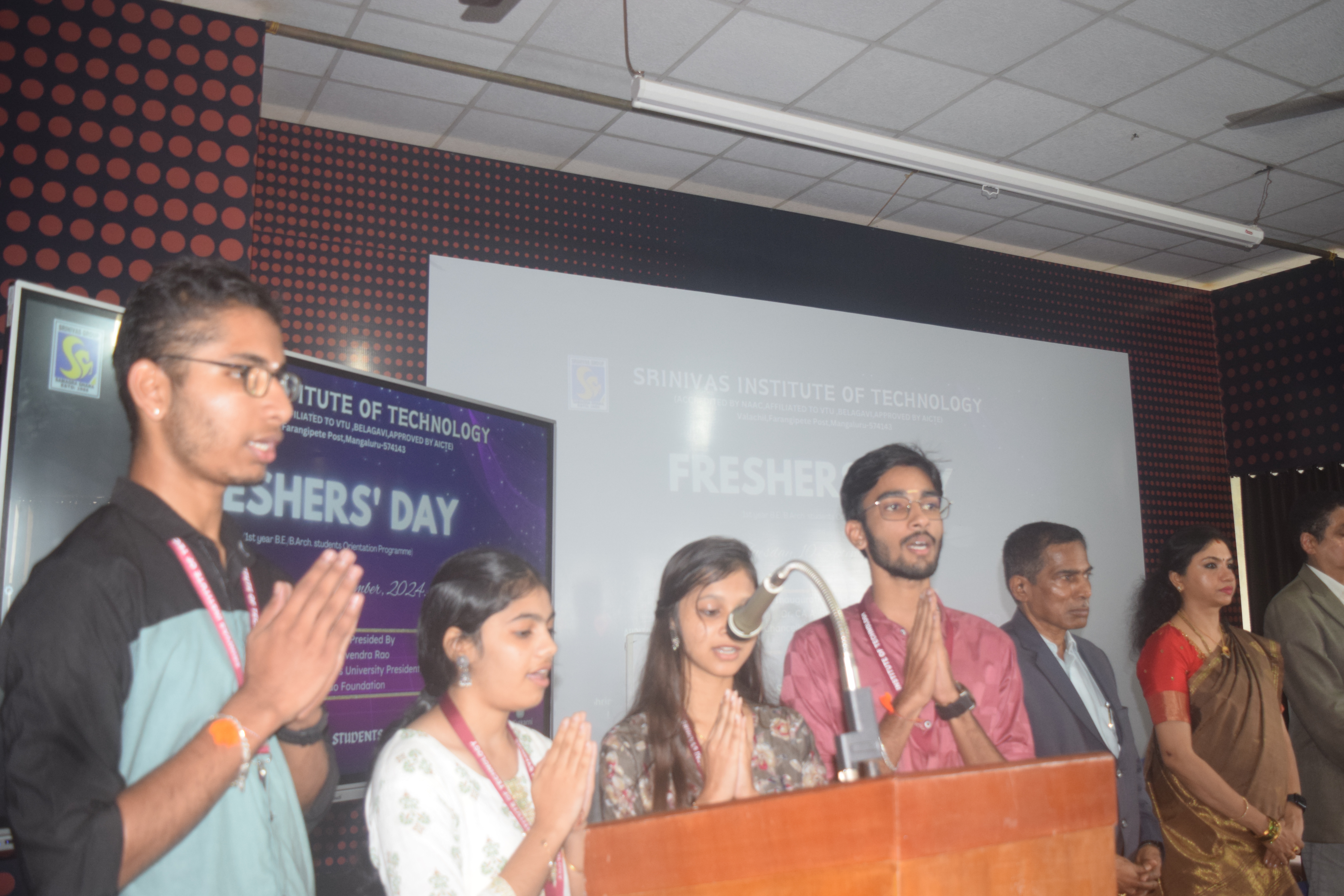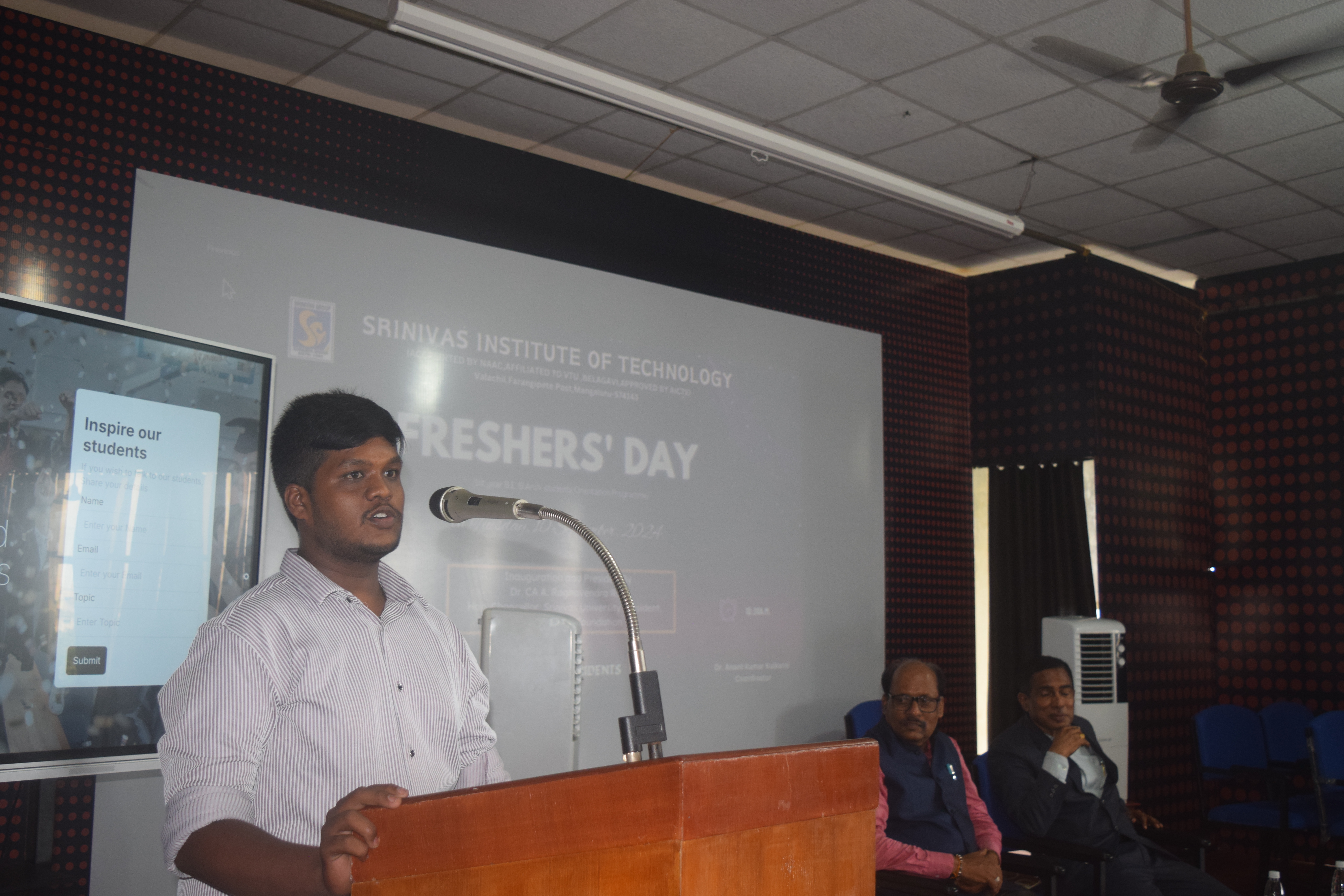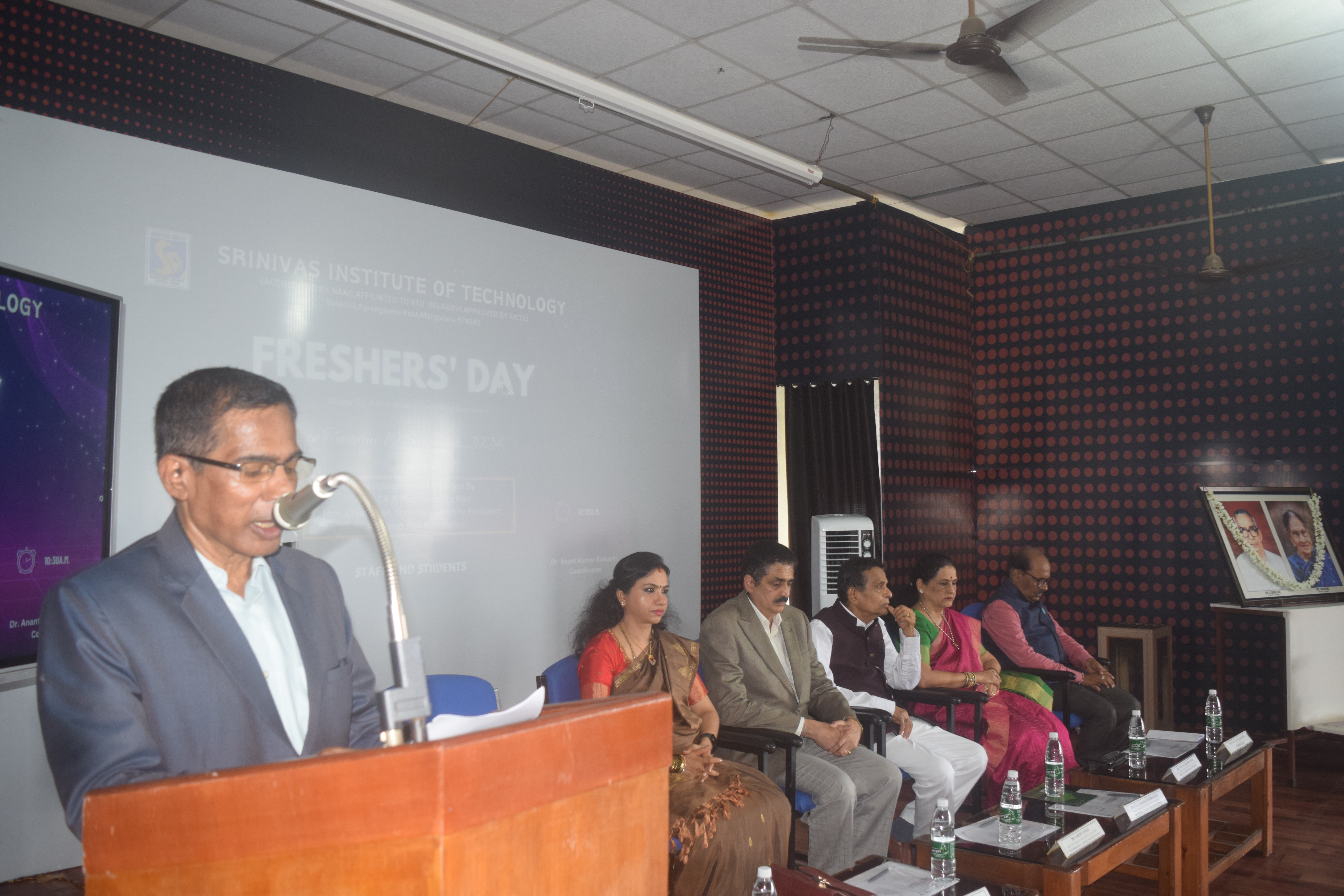 Srinivas Institute of Technology organized a Fresher’s Day/ Orientation Program for the 1st Year B.E./B.Arch students on 10th September 2024. Dr CA A Raghavendra Rao,Chancellor Srinivas University,President,A Shama Rao Foundation,Mangaluru in his presidential remarks said that the students should become leaders in their area of specialization and also he stressed the importance of communication skill that one should have to reach the good heights. Dr A. Srinivas Rao, Pro Chancellor,Srinivasa University Vice President A Shama Rao Foundation,Mangaluru has advised students to contribute for the advancement of Science and Technology, He spoke about the numerous opportunities available in India's growing economy and encouraged students to think innovatively and take up projects that can positively impact society. Trustee Member Smt. A. Vijayalakshmi R. Rao informed the students to bring good name to the institution as well as for their parents. Smt. Mitra S. Rao, Member, Board of Governors,Srinivas University, & Secretary, A. Shama Rao Foundation, Mangalore spoke about the importance of values that each students should inculcate in their student life and throughout, . She addressed the distractions posed by social media, urging students to engage actively in social interactions rather than becoming overly absorbed in mobile phones and social media platforms. During the event, Dr. CA A. Raghavendra Rao sir also launched the new Alumni Website, developed by Prof. Madhusudhan S who is also an alumni of SIT 2019 batch, along with Mr. Adarsh S M of 7th Semester AI & ML, Mr. Pratham Shetty of 5th Semester AI & ML. The website aims to strengthen the connection between alumni and the institution. Prof. Jayram Thumbe, handled a session on “Engineering: A Success Path”. Parents, newly admitted students expressed their views on this occasion. Dr. Shrinivasa Mayya D, Principal of the college, welcomed the gathering and briefly introduced the management, college and Head of Various Departments, The invocation prayer was led by Ms. Deeksha Sharma and her team from the 2nd year of Computer Science Engineering. The vote of thanks was delivered by Dr. Anant Kumar Kulkarni, Head of the Department of Mathematics. The event was smoothly conducted with Dr. Sumana V S and Prof. Rashmi serving as the Masters of Ceremony