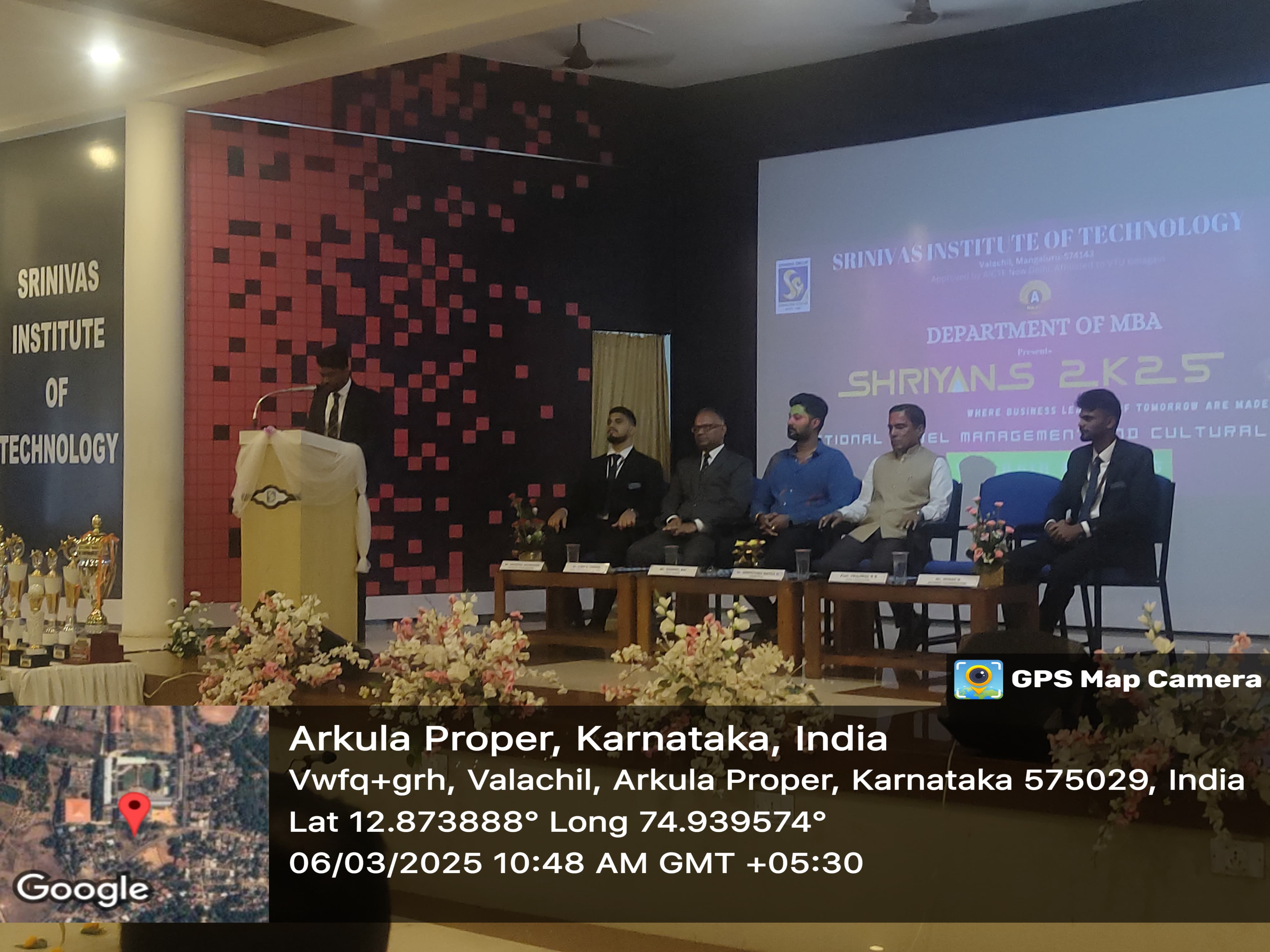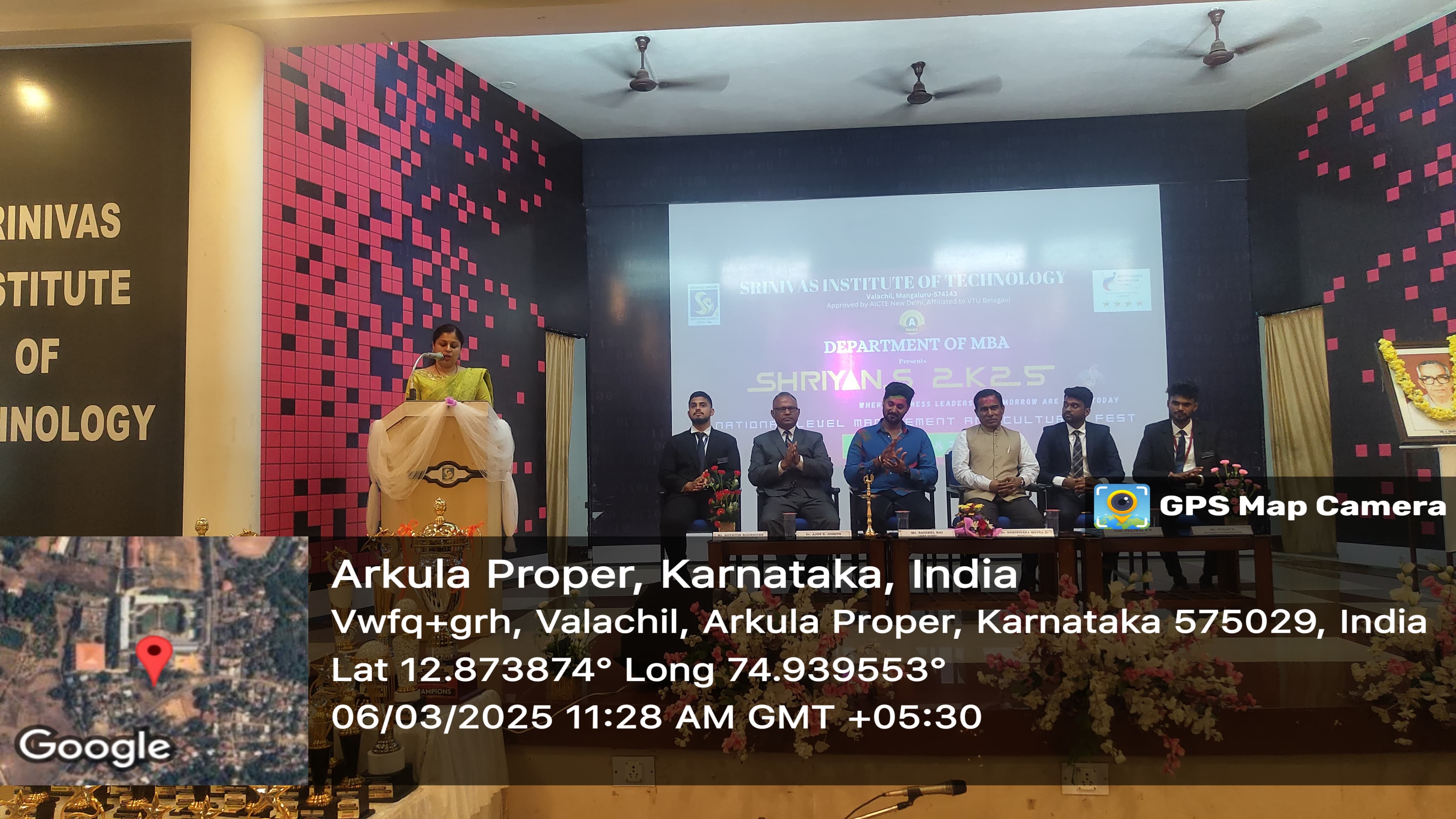 Mangaluru, March 6-7, 2025: The **MBA Department of Srinivas Institute of Technology, Valachil** hosted the highly anticipated **National Level Management and Cultural Fest – Shriyans-2K25** on **March 6th and 7th, 2025**. ### 🏛 Event Highlights ✔ **Inauguration by Mr. Saiheel Rai**: A well-known **Host, Actor, Entrepreneur, and Managing Director of Sai Productions**, who shared insights on **management skills** essential for future leaders. ✔ **Inspirational Address**: He encouraged students to participate in such events and provided **live examples of success stories** to motivate the youth. ✔ **Traditional Lamp Lighting Ceremony**: The dignitaries and participants marked the commencement of the fest with a formal **lamp lighting ceremony**. ### 🎤 Dignitaries Present ✔ **Dr. Shrinivasa Mayya D**, Principal, presided over the function and **motivated students** to excel in all activities. ✔ **Dr. Ajoy S Joseph**, Head of MBA Department. ✔ **Prof. Prajwal B K**, Staff Coordinator. ✔ **Mr. Suhas H & Mr. Royston Xavier Rodrigues**, Student Coordinators. ### 🎭 Master of Ceremony ✔ **Miss Deeksha & Miss Sherly Seedarla** expertly hosted the event, ensuring smooth proceedings. The fest provided an **exciting platform** for students to **showcase their management and cultural skills**, fostering **teamwork, creativity, and leadership**. #Shriyans2K25 #MBAFest #SITMangaluru #ManagementSkills #CulturalFest #Leadership