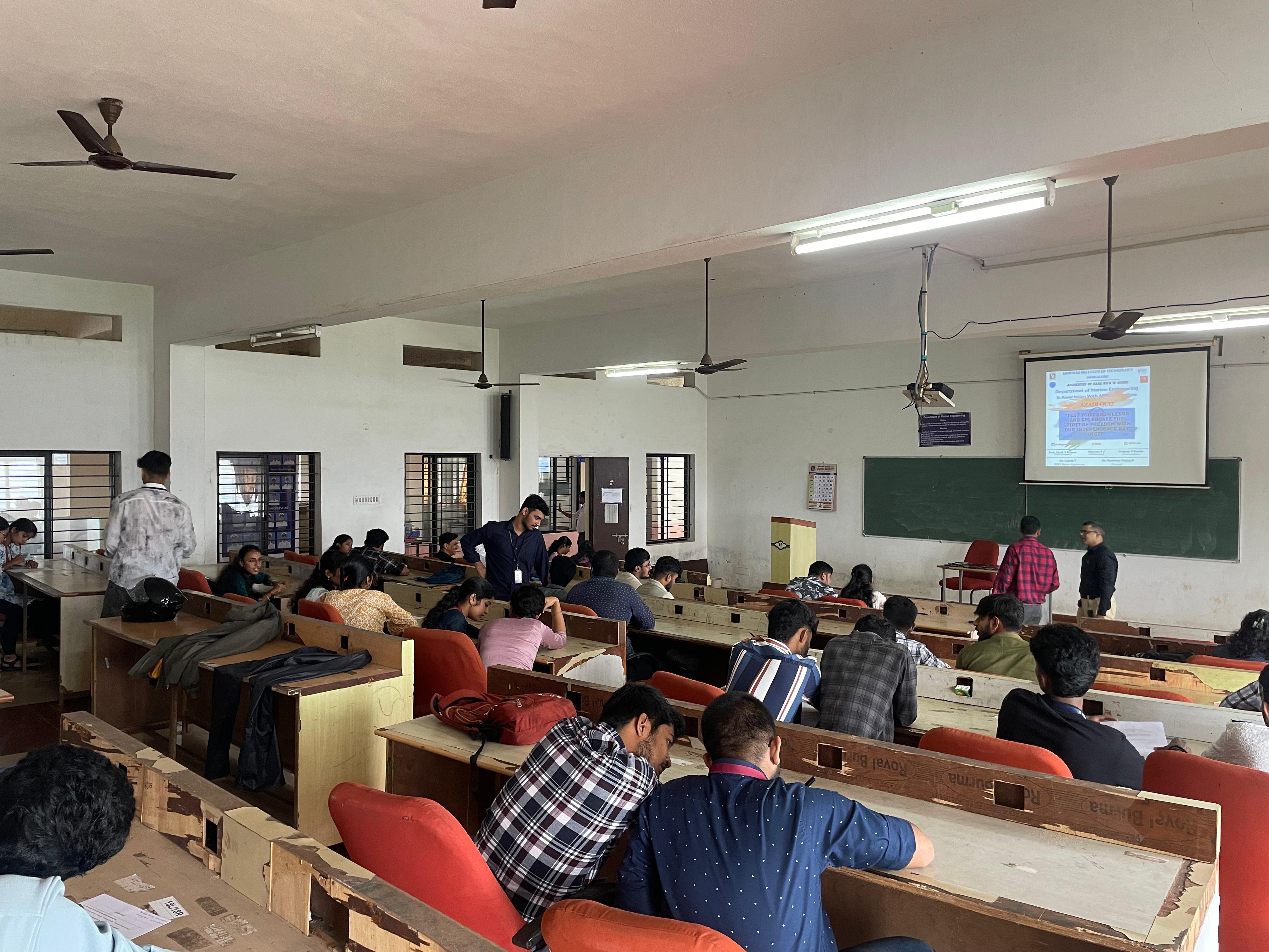 On 14th August 2025 the Department of Marine Engineering in association with AIMES and Institution’s Innovation Council IIC proudly organized the Azadi Quiz at Srinivas Institute of Technology Mangaluru The event brought together 81 enthusiastic students from all departments of the college to test their knowledge and celebrate the essence of Independence Day With questions spanning India’s freedom struggle culture achievements and current affairs the quiz ignited competitive spirit while reinforcing patriotism The event was coordinated by Prof Vivek V Kumar AIMES Coordinator Shravan N J AIMES President and Sanjana S Kotian Event Coordinator The Programme was held under the guidance of Dr Lokesh V HOD Marine Engineering and Dr Shrinivasa Mayya D Principal Srinivas Institute of Technology Mangaluru