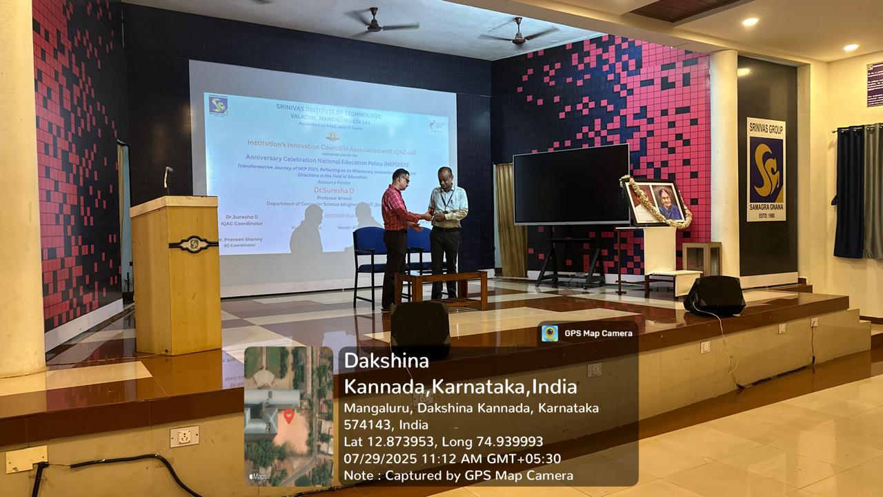 The Institution Innovation Council IIC in association with Internal Quality Assurance cell IQAC of Srinivas Institute of Technology Mangaluru celebrated the Anniversary of the National Education Policy NEP 2020 on July 29 2025 with an enlightening session aimed at spreading awareness about the vision and progressive reforms brought by NEP The event was graced by Dr Suresha D Professor in the Department of Computer Science and Engineering Srinivas Institute of Technology Mangaluru who served as the resource person In his address Dr Suresha D provided a comprehensive overview of the transformational aspects of NEP 2020 including the importance of multidisciplinary education skill based learning flexibility in curriculum and the integration of innovation and technology in education The session was started with a brief introduction to the objectives of NEP 2020 followed by the keynote by Dr Suresha D who emphasized the role of higher education institutions in aligning their strategies with national goals He encouraged faculty and students to actively participate in innovation activities promoted by the IIC and leverage the opportunities brought forth by NEP The event saw enthusiastic participation from over 120 students and faculty members who engaged in a vibrant QA session at the end reflecting their interest in the policys practical implications The program was organized with the full support of Dr Shrinivasa Mayya D Principal of Srinivas Institute of Technology whose backing underscored the institution’s commitment to fostering an environment that values educational excellence and holistic student development Additionally Dr Praveen Shenoy IIC Coordinator and Dr Suresha D IQAC Coordinator SIT played a significant role in facilitating the event ensuring it aligned with the IIC’s mission to promote innovative thinking and entrepreneurship among students The entire event was coordinated seamlessly by Prof Ganapathi Sharma Department of AI and DS Event Coordinator for the IIC who organized and managed the program to ensure meaningful engagement with students effectively commemorating the spirit of National Education Day and emphasizing the value of education in national and personal development The NEP 2020 Anniversary celebration concluded with a renewed commitment from the institute to integrate the principles of NEP into academic and co curricular activities further strengthening its mission to create a holistic multidisciplinary and future ready learning environment