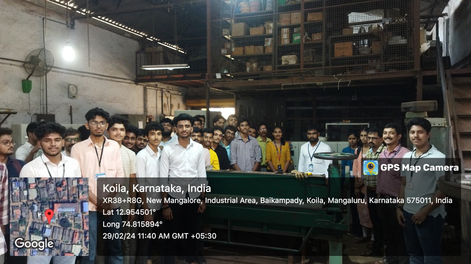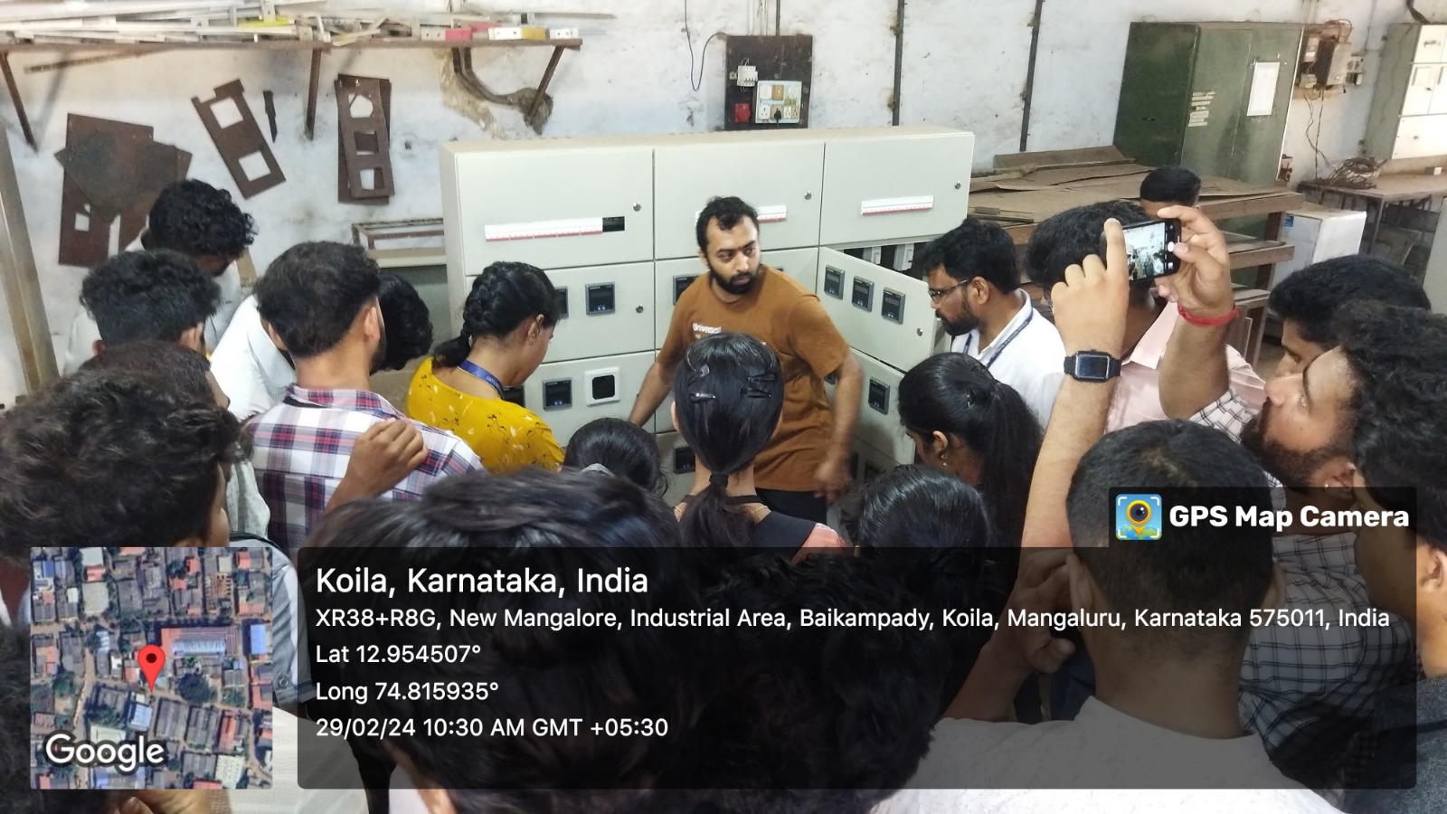 Field visit to Shine Power Systems,Baikampadi was organized for the for 3rd and 5thsemester students of Electrical & Electronics Engineering Department of Srinivas Institute of Technology, on 29th of February, 2024. There were 40 students and 3 teaching staffs in the team. Shine Power Systems is engaged in manufacturing and supplying a wide range of world class Automation Panels, industrial Electrical control panels like AMF panel, APFC panel, MCC panel etc. and also service back-up for it. Students were briefed about the Electrical Panel board enclosures manufacturing process, power distribution systems manufacturing and assembly. Overall the visit gave exposure to the students to visualize various Electrical Panel board equipment and their positioning which would help students in relating to the theoretical concepts included in the curriculum.
