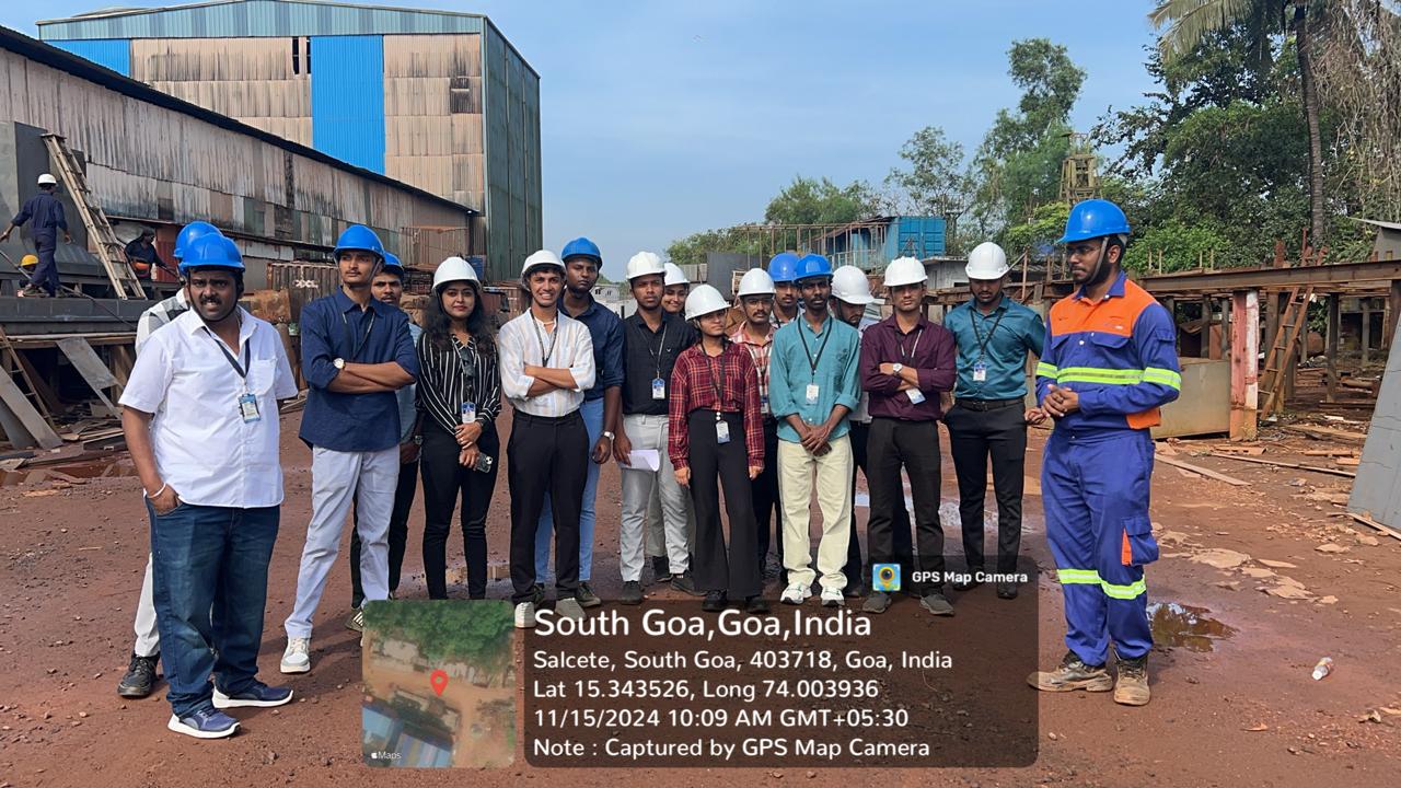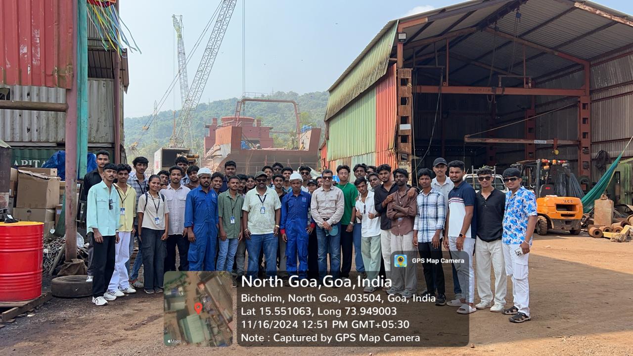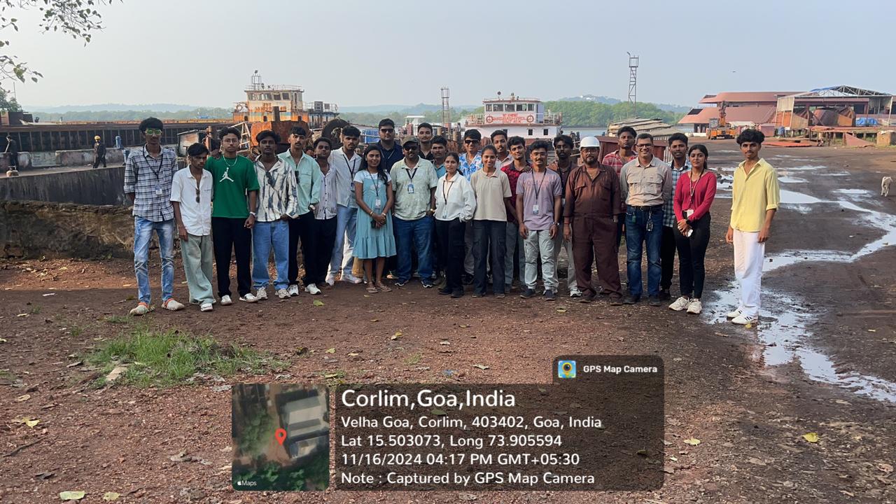 Industrial Visit Students of the 5th Semester Marine Engineering of Srinivas Institute of Technology, in collaboration with the Industry-Institute Interaction Cell, visited four renowned shipbuilding and repair facilities in Goa on the 15th and 16th of November 2024. The visit was led by Professors Nithin Joshuva and Vivek Vijay Kumar of the department. The visit began at Chowgule Shipbuilding, known for its modular construction techniques and efficient assembly lines that produce mid-sized cargo vessels, barges, and fishing trawlers. Goa Shipyard Limited (GSL), a government-owned defense shipbuilding enterprise, showcased advanced CAD/CAM tools, precision fabrication, and an automated block-building process for naval ships and patrol vessels. At Mandovi Drydocks, the focus was on ship repair and maintenance activities, including hull inspections and drydocking procedures crucial for ensuring vessel safety and longevity. The tour concluded at Dempo Drydocks, which specializes in retrofitting and overhauls, employing environmentally friendly practices such as waste treatment, recycling systems, and advanced coatings to minimize marine growth and enhance vessel efficiency.