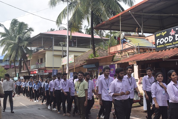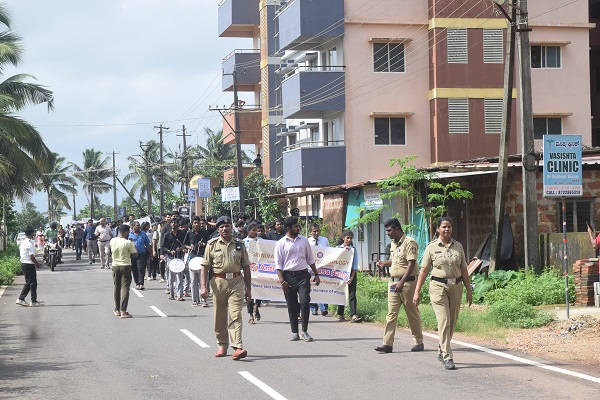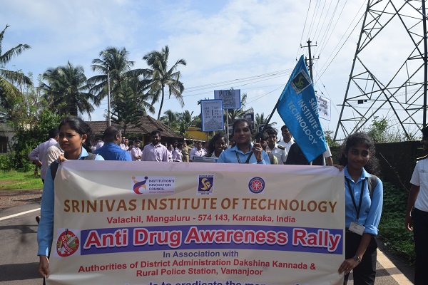 Srinivas Institute of Technology, Valachil Mangalore in association with authorities of district administration, Dakshina Kannada and Rural Police Station, Vamanjoor conducted a “Anti Drug Awareness” Rally near the college campus on 28th July 2023. Dr. Shirinivasa Mayya, Principal of the college, Dr. Anant Kulkarni, Student Welfare Officer of the college, Police Personnel from Rural Police Station, Vamanjoor, staff and hundreds of students from various branches participated in the mega rally.