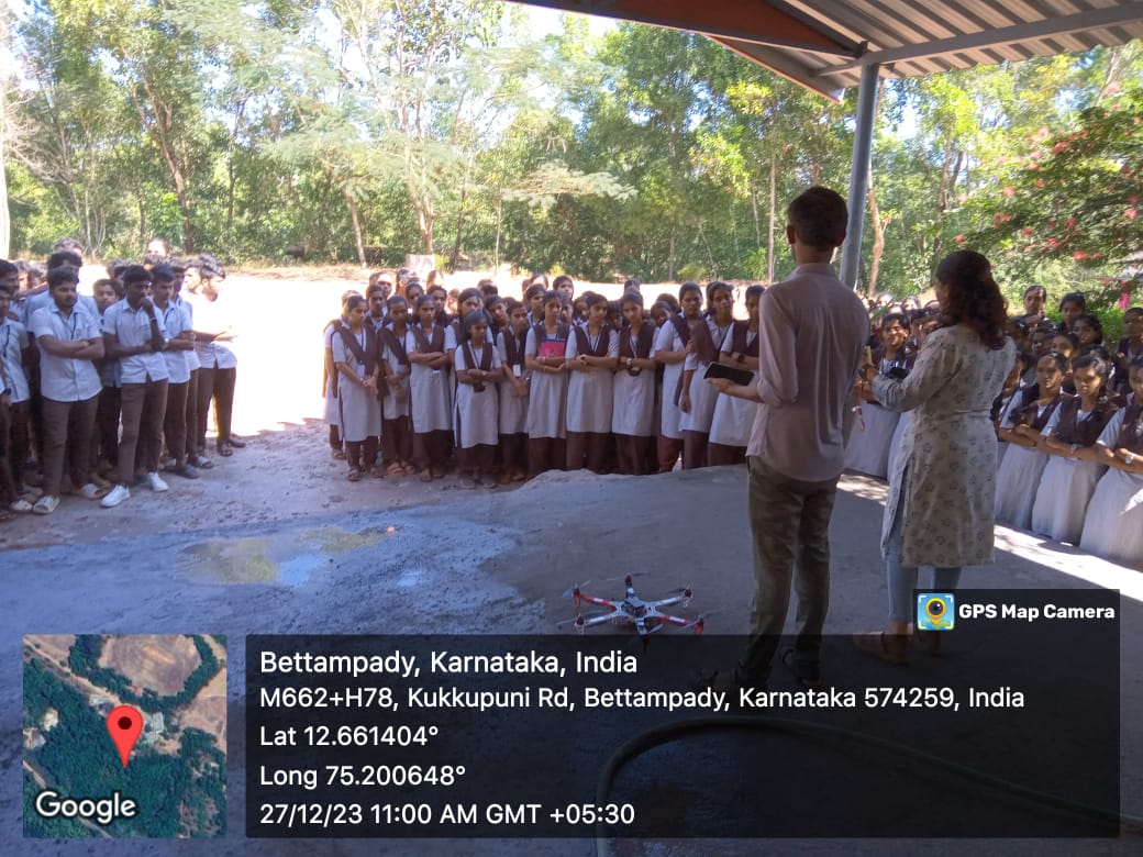 Department of Physics of Srinivas Institute of Technology, Mangaluru, organized an outreach program titled Recent Technology Developments for Pre-University students on December 27, 2023.Dr. Suryanarayana K, Professor and Head of the Physics Department, coordinated the program. Professor Sathish Kumar from the Electronics and Communication Engineering department provided insights into the field through a live demonstration. As well as the enthusiastic students, Ms. Laxmi Ishappa Itagi (4SN20AE012) and Mr. Varuna T (4SN20AE035) from the Aeronautical Engineering department conducted a live demonstration of a drone, elucidating its significance.Mr. Farooq Sayyad, the Principal of Govt. PU College Bettampady, extended a warm welcome to the gathering. The vote of thanks was delivered by Mrs. Rajani, a lecturer in the Department of Sociology at Govt. PU College Bettampady.