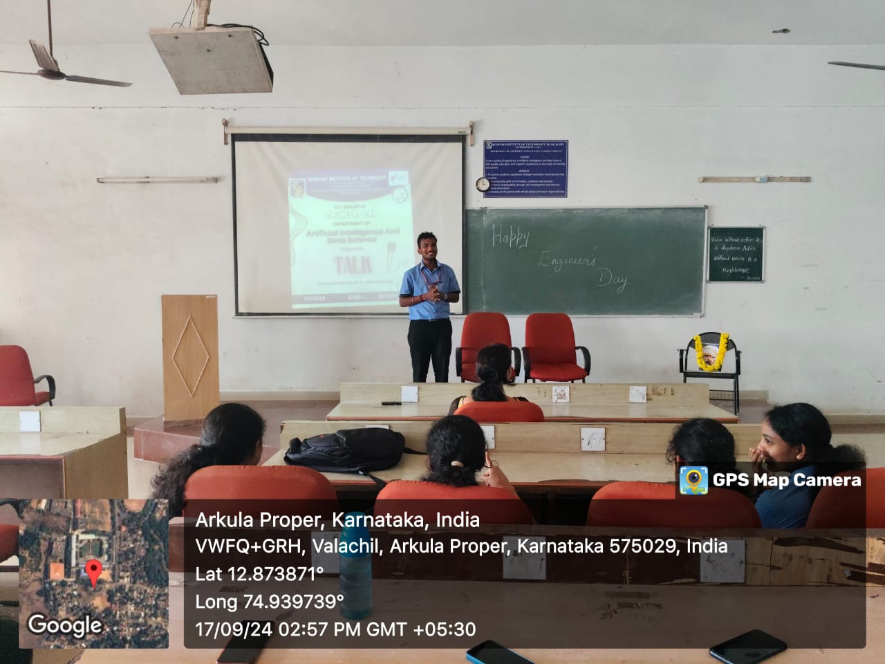 On September 17, 2024, the Department of Artificial Intelligence and Data Science (AI & DS) at Srinivas Institute of Technology organized a Talk Event in honor of Sir M. Visvesvaraya on the occasion of Engineers' Day. The event was judged by Prof. Bindya from the Department of AI & DS. Professors from the AI & DS department, including Prof. Ajay Pinto, Prof. Kiran, Prof. Kavitha, Prof. Abhijna, and Prof. Ganapathi Sharma, along with the Head of the Department, Prof. Nagaraja Hebbar, participated and shared their insights about engineering and the contributions of Sir M. Visvesvaraya. The program received support from our esteemed Principal, Dr. Shrinivasa Mayya D, and was successfully initiated and completed through the efforts of Prof. Nagaraja Hebbar, HOD of AI & DS. The event was coordinated by Prof. Kiran, Association Coordinator, and Prof. Bindya from the AI & DS Department.