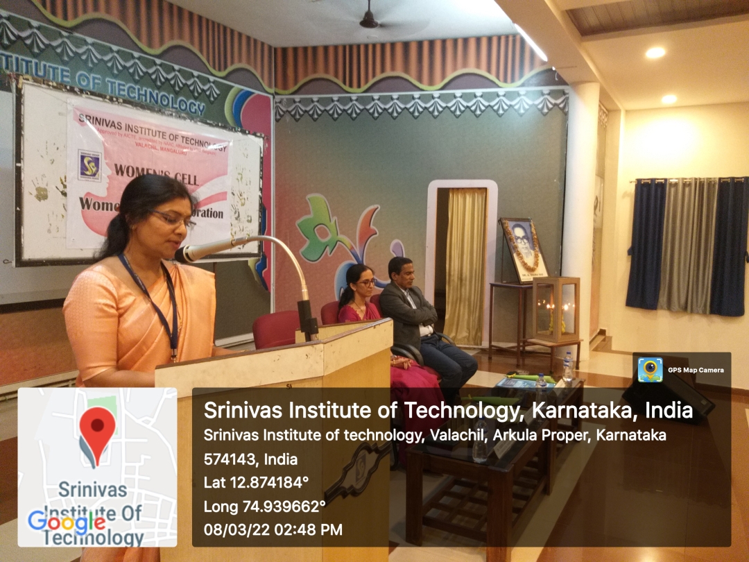 Women’s Cell organized women’s day celebration on 8th March 2022 . Dr.Anila Dipak Shetty Proprietor, The Six &Co Managing Partner, Be Well Pharma was the chief guest. Dr,Shrinivasa Mayya.D. Principal Srinivas Institute of Technology Presided over the function. Dr Shrinivas Mayya .D in his presidential address spoke about Gender equality and how women have to empower themselves by developing self-confidence. AR Arunakshi from the department of Architecture welcomed the gathering, Dr.Veena Santhosh Rai, coordinator Women’s cell introduced the Chief Guest. Formal function was followed by a special lecture by Dr Anila Dipak Shetty on, “WOMEN AS CHANGE MAKER “-How to create Vision to stand Globally”. Students from all the branches of Engineering, MBA and MCA Participated in the programme. Professor Mamatha Assistant from Department of Computer Science proposed a vote of thanks.
