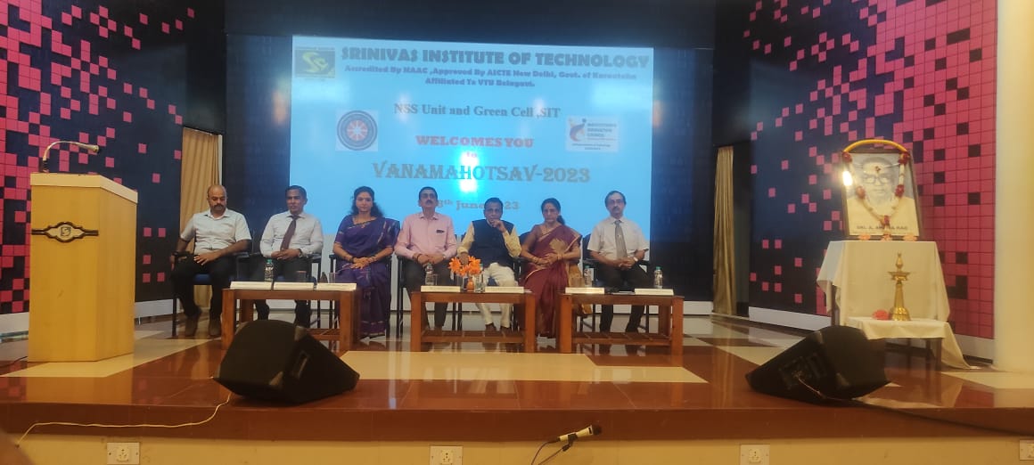 Vanamahotsav was organized on 28/06/23 by Green Cell and NSS Unit. Green Cell Dr.Soorya Narayana K. welcomed the gathering. President of the function Dr.C.A Raghavendra Rao, Chancellor, Srinivas University and President, A Shama Rao Foundation, Mangalore elaborated on responsibilities to save our forest and also he contributed 1000 fruits and other saplings and encouraged students to make the campus a green campus. Smt. Vijayalakshmi R. Rao Trustee Member, Board of Governors Srinivas University, Director, A.Shama Rao Foundation encouraged students to plant more and more saplings so that environmental imbalance can be reduced. Chief Guest of the function Dr.Srinivas Rao, Pro Chancellor, Srinivas University and Vice-President, A Shama Rao Foundation Mangalore, enlightened that we have to keep interacting with nature in one or other way, which improves our physical and mental fitness. Smt Mitra S. Rao, Trustee Member, Board of Governors Srinivas University, Secretary, A.Shama Rao Foundation, insisted students to make their own team which can protect environment in Dakshina kannada by means of campaigning and creating awareness among the public. She also pointed out that animals and human clashes can be avoided by not cutting trees in cities. Dr.Shrinivasa Mayya .D, Principal Srinivas Institute of Technology, was present during occasion. Principals of sister institutions and Hods of various Department, NSS coordinator P.Rakesh Mallya, thanked the gathering. Prof Steven Tellis was the master of the ceremony
