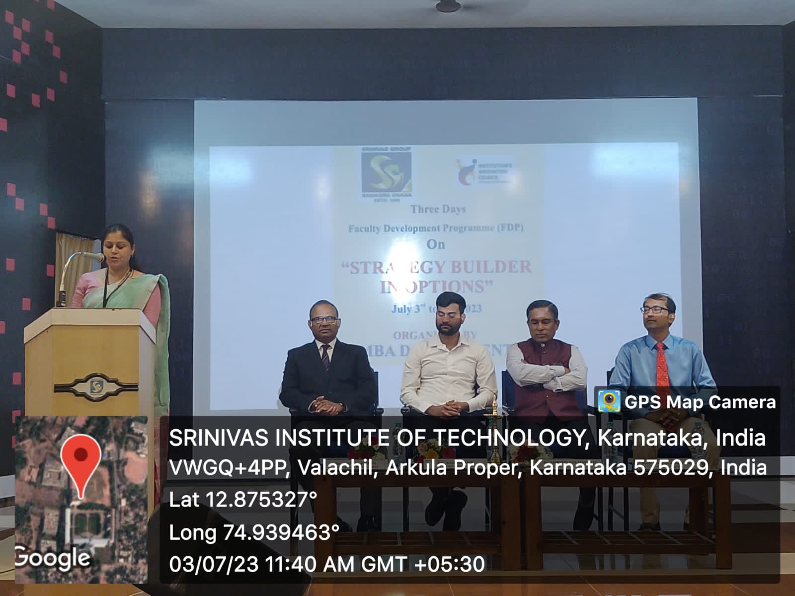 Three Days Faculty Development Program (FDP) on Strategy Builder in Options was organized by MBA Department of Srinivas Institute of Technology from 3rd to 5th July 2023. It was mainly about enriching the knowledge in option trading .Dr.Radhakrishna Sharma, Professor, Justice K S Hegde Institute of Management, Nitte, Mr.Harish Naik, Associate Vice President Motilal Oswal Financial Services, Mangalore, and Mr.Gaurav Kumar Assistant Manager Motilal Oswal Financial Services, Mangalore were the resource persons for this three days program. Principal of the college and Convener of this three days program Dr.Shrinivasa Mayya D presided over the function and addressed the gathering. Mr. Steevan Robert Tellis, Staff Coordinator of the program has briefed about FDP and its objectives to the participants. The Head of MBA department and Joint Convenor of this three days program Dr.Ajoy S Joseph was also present during the program.Dr.Hariprakash U P Faculty, dept of MBA welcomed the gathering, Prof.Rashmi, Dept of MBA proposed vote of thanks. Ms.Violet Pinto, Second year MBA was the Master of ceremony of the program.