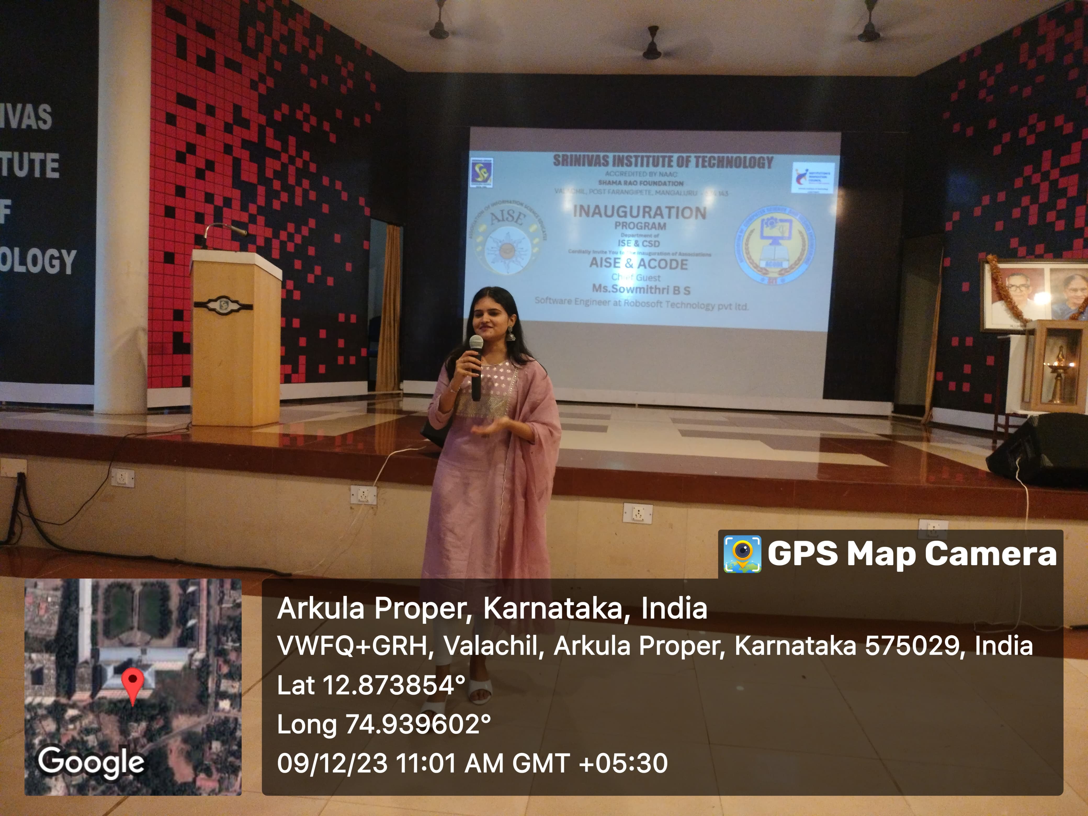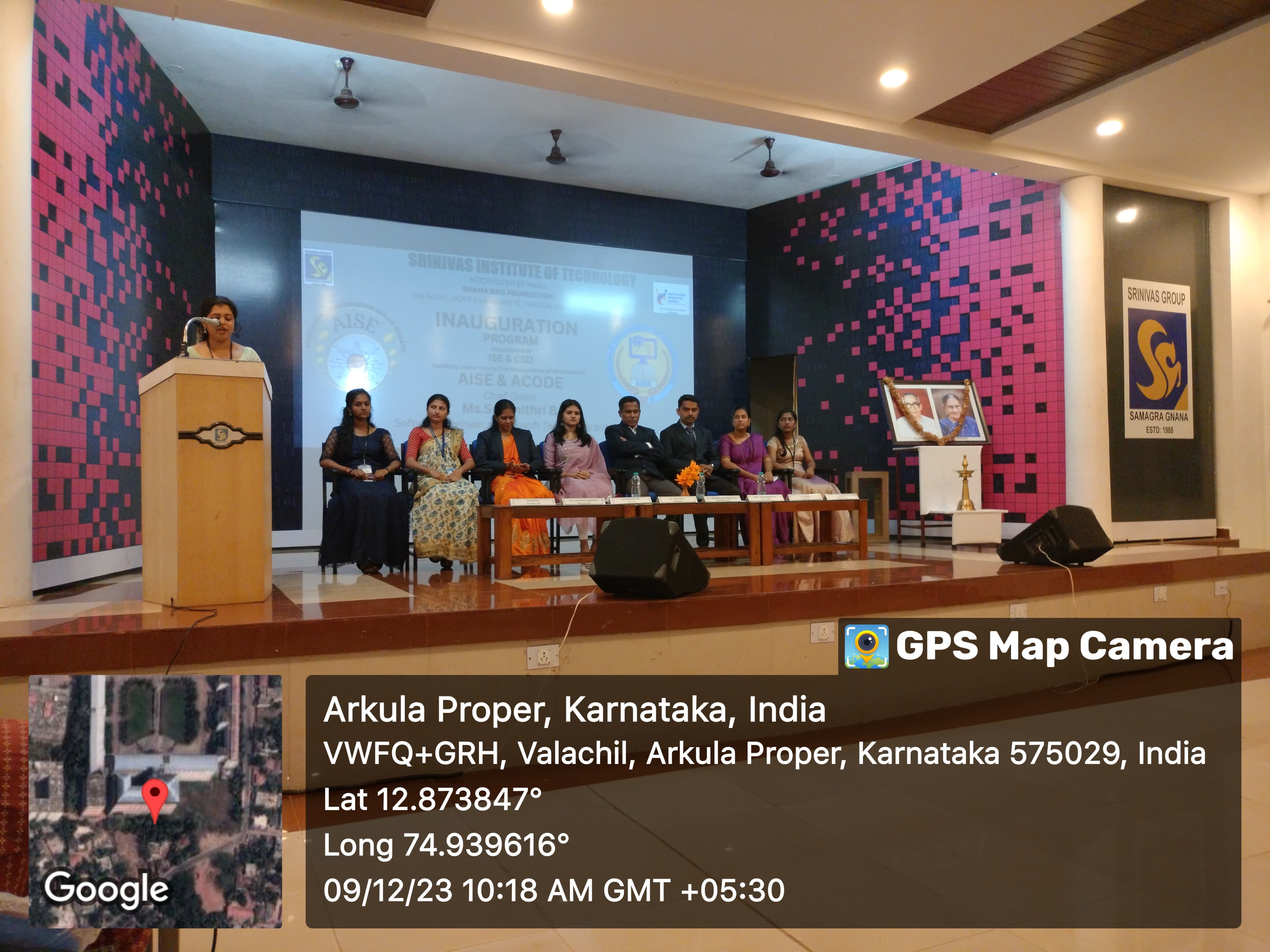 The combined association inaugural function of AISE and ACODE was held on 9th December 2023.The event was invocated by Jayashree,5th sem ISE and Sannidhi of 3rd sem CSD followed by welcome address by Vaibhavi president of AISE, Dr.Padmanayana HOD,Department of ACODE, Prof.Sudharshan K HOD, Department of AISE, were present at the event. The association was inaugurated by the chief guest, Ms. Sowmithri Software engineer, Robosoft Pvt Ltd.The inaugural function was presided by Dr.Shrinivasa Mayya D where he appreciated the efforts in making associations and opportunities offered by college in an over-all development, coming together of diverse ideas, promote more events and programs and enhance skills. The inaugural ceremony was followed by a talk by the chief guest on ‘Effective way of learning’ where she highlighted that learning isn’t limited to college, importance of settling down, preparation for placements, happenings of corporate world, being part of events. The event continued with the Dr.Padmanayana, HOD of CSD extending congratulations to the office bearers of the associations. The event was followed by complete action plan for academic year 2023-24 was presented by President of ACODE Ms.Deeksha Shetty. Mrs. Rajeshwari R Shettigar, the faculty advisor of ACODE (Association of Computer Science and Engineering), and Mrs. Sowmya, the faculty advisor of AISE (Association of Information Science and Engineering), formally announced and introduced the office bearers for the respective associations for the academic year 2023-24 to the gathered audience. The function was concluded with a vote of thanks delivered by Sangeetha, a student from the 7th semester of AISE.