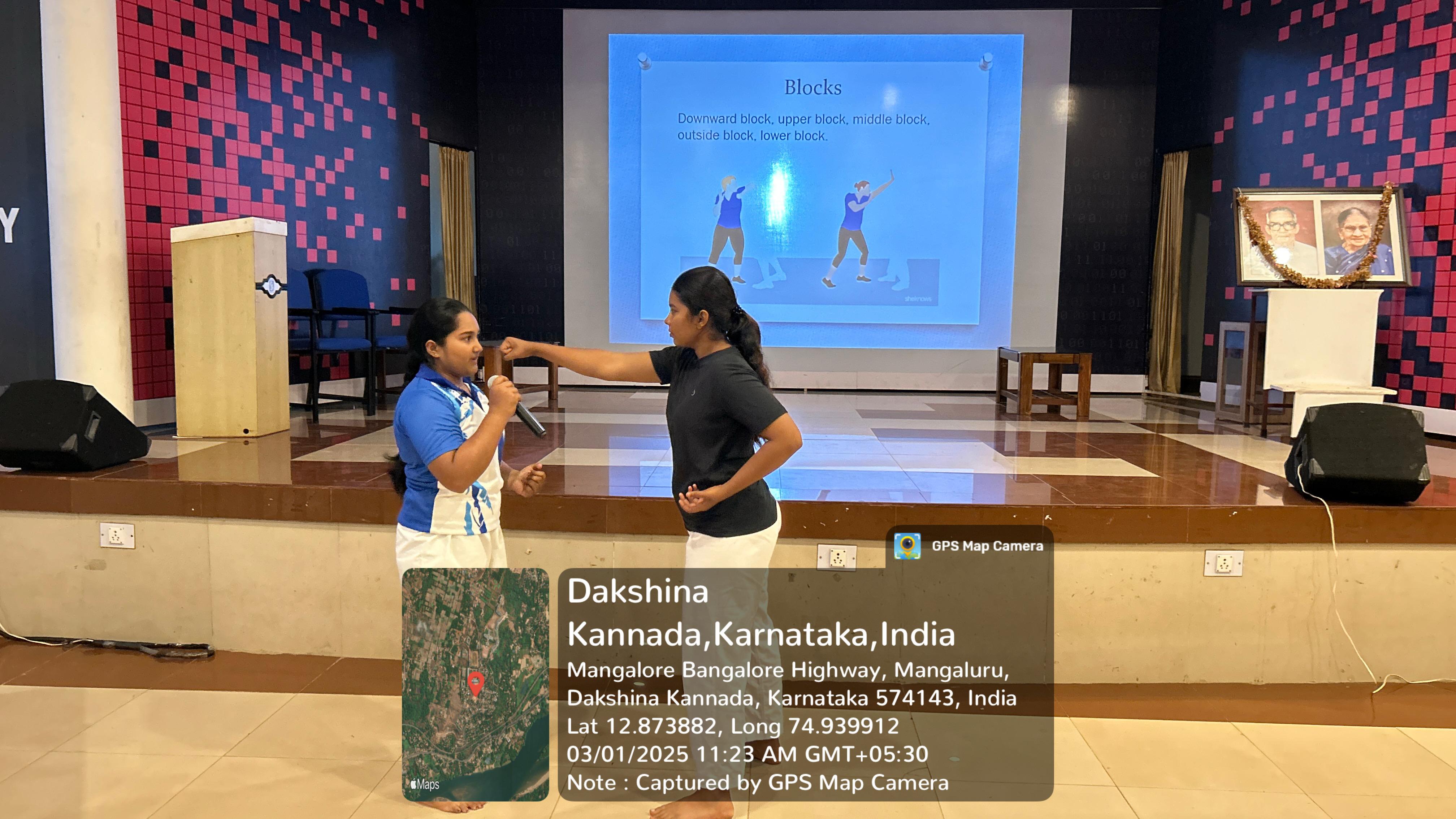 Department of Electronics and Communication Engineering and Department of Computer Science and Business System SRINIVAS INSTITUTE OF TECHNOLOGY Valachil, Mangaluru A SESSION ON THE POWER OF VOICE: VERBAL SELF-DEFENCE AND BOUNDARY SETTING. The Department of Electronics and Communication Engineering (ECE) and the Department of Computer Science and Business System (CSBS), in association with the Women Cell, organized an insightful session on The Power of Voice: Verbal Self-Defence and Boundary Setting. The program was conducted in the Seminar Hall and witnessed active participation from students and faculty members. The session began with a welcome speech by Jitheeksha, a third-year student from the ECE department, who warmly introduced the session and its significance. The resource person for the session was Ms. Riktha Kiran, a third-year student from the ECE department. Sameeksha from the CSBS department accompanied for the demo session, adding value to the practical demonstrations. The highlights of the session included: Understanding the significance of voice in self-defence, techniques for assertive communication and setting boundaries, Practical demonstrations on verbal self-defence, Hands-on session to practice voice modulation and confident speech, Application of self-defence strategies in real-life situations. The session included both demonstration and hands-on activities, making it an engaging and practical learning experience. Participants learned how to use their voice as a powerful self-defence tool and practiced various techniques for effective verbal boundary setting. The session was highly informative and interactive, equipping participants with essential skills in verbal self-defence. It successfully emphasized the importance of using one’s voice as a means of setting boundaries and protecting oneself in various situations. The event concluded with positive feedback from attendees, who found the session beneficial for personal safety and confidence-building. Deeksha Dr Soorya Krishna K Dr. Shrinivasa Mayya D. Women cell coordinator HOD Principal Department of ECE DATE: 01-03-2025 PLACE: VALACHIL