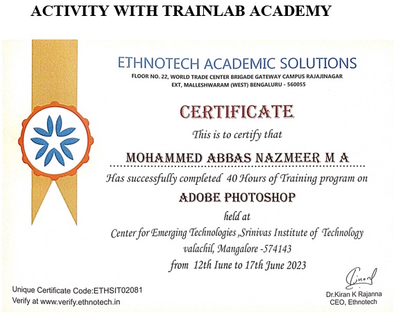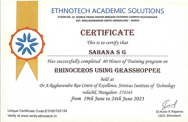 As part of an MOU between SIT, Valachil and Train Lab Academy Bangalore, the second, third and fourth year B.Arch. students were given a week-long training in software’s like Grasshopper, 3DS max, Autodesk Revit and Auto CADD, Adobe photoshop.The training was conducted in the academic year 2022 to 2023 Adobe Photoshop training: 12 June to 17 June 2023 Autodesk Revit: 8 Feb. to 14 Feb 2023 Rhino using Grass hopper: 19 June to 24 June 2023.