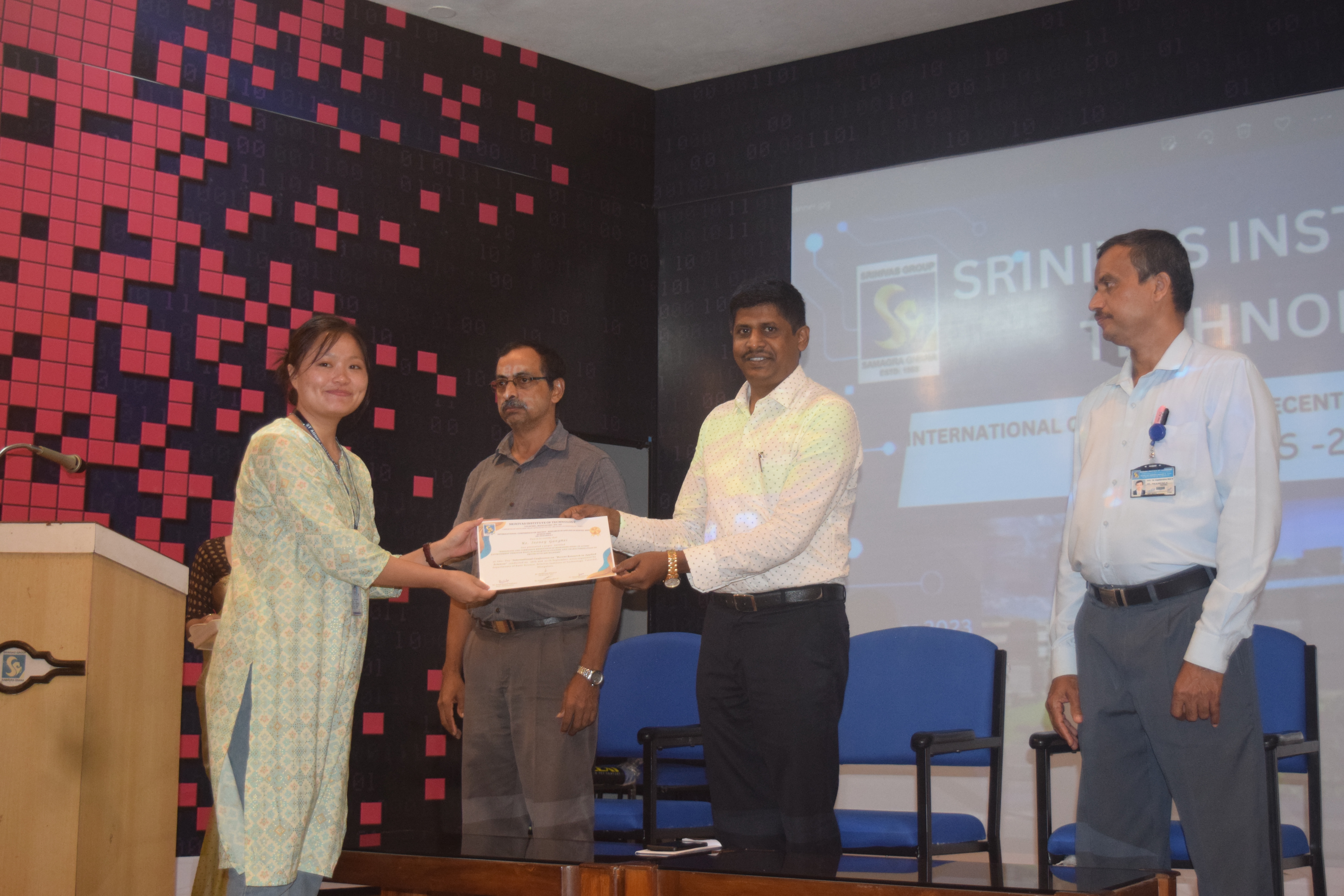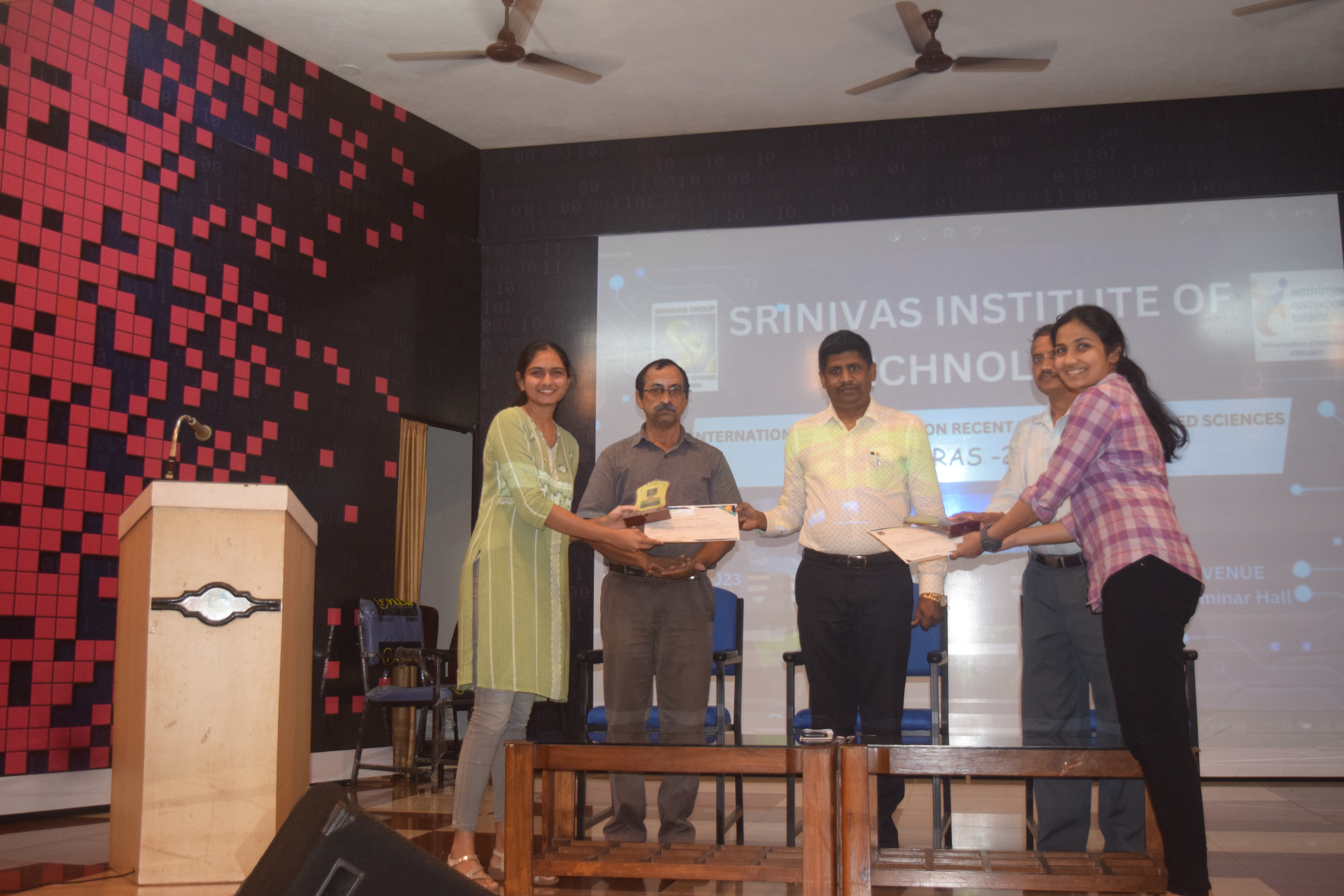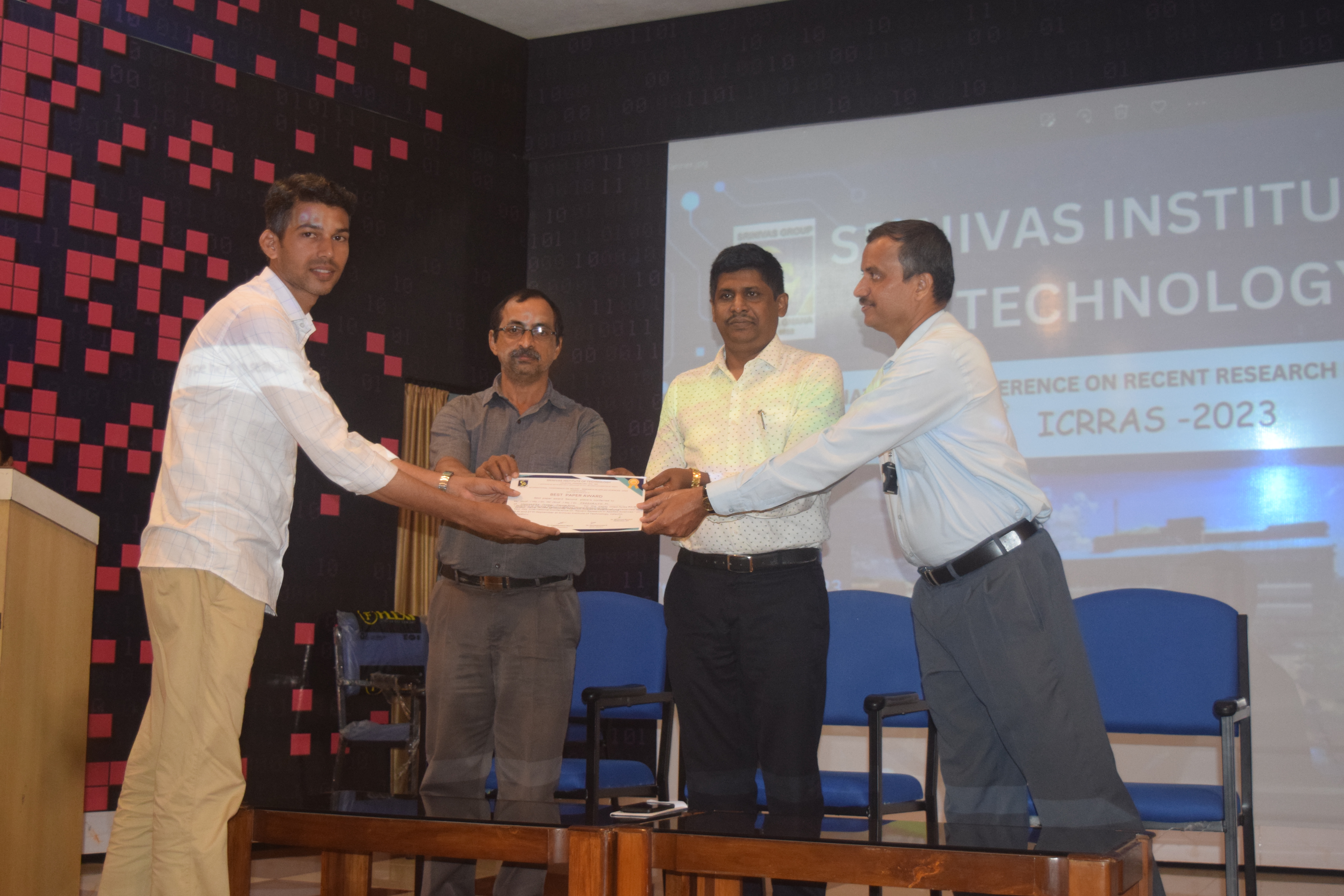 An International Conference on “Recent Research in Applied Sciences [ICRRAS-2023]” was organized by the Departments of Basic Science on 26th and 27th September 2023 at Srinivas Institute of Technology, Mangaluru. The conference proceeded with plenary talk by three eminent scientists as the key note address which is followed by paper presentation by the delegates. On 27th September 2023 valedictory programme of the two day conference being conducted. Dr.Praveen B.M., Director-Research and Innovation council, Professor and Head in Chemistry and nanotechnology, Srinivas University presided over the function, few delegates presented the feedback about the conference appreciating the international conference organised by the departments of Basic science, and they expressed their opinion and suggestions. The best paper presentation award and participation certificates being handed over to the delegates. Dr. Gopalakrishna Bhat N. HOD of Chemistry who is the convenor of the conference welcomed the dignitaries and delegates during valedictory programme, Mrs. Sahana G.K. Assistant professor in Physics rendered vote of thanks to renowned scientists who have participated as resource persons, chair persons of paper presentation sessions who were valuators for paper presentation as well as all the delegates. The conference session was anchored by Dr. Sumana V.S., Associate Professor, Department of Chemistry and Vasthalya. P., Assistant professor, Department of Mathematics.