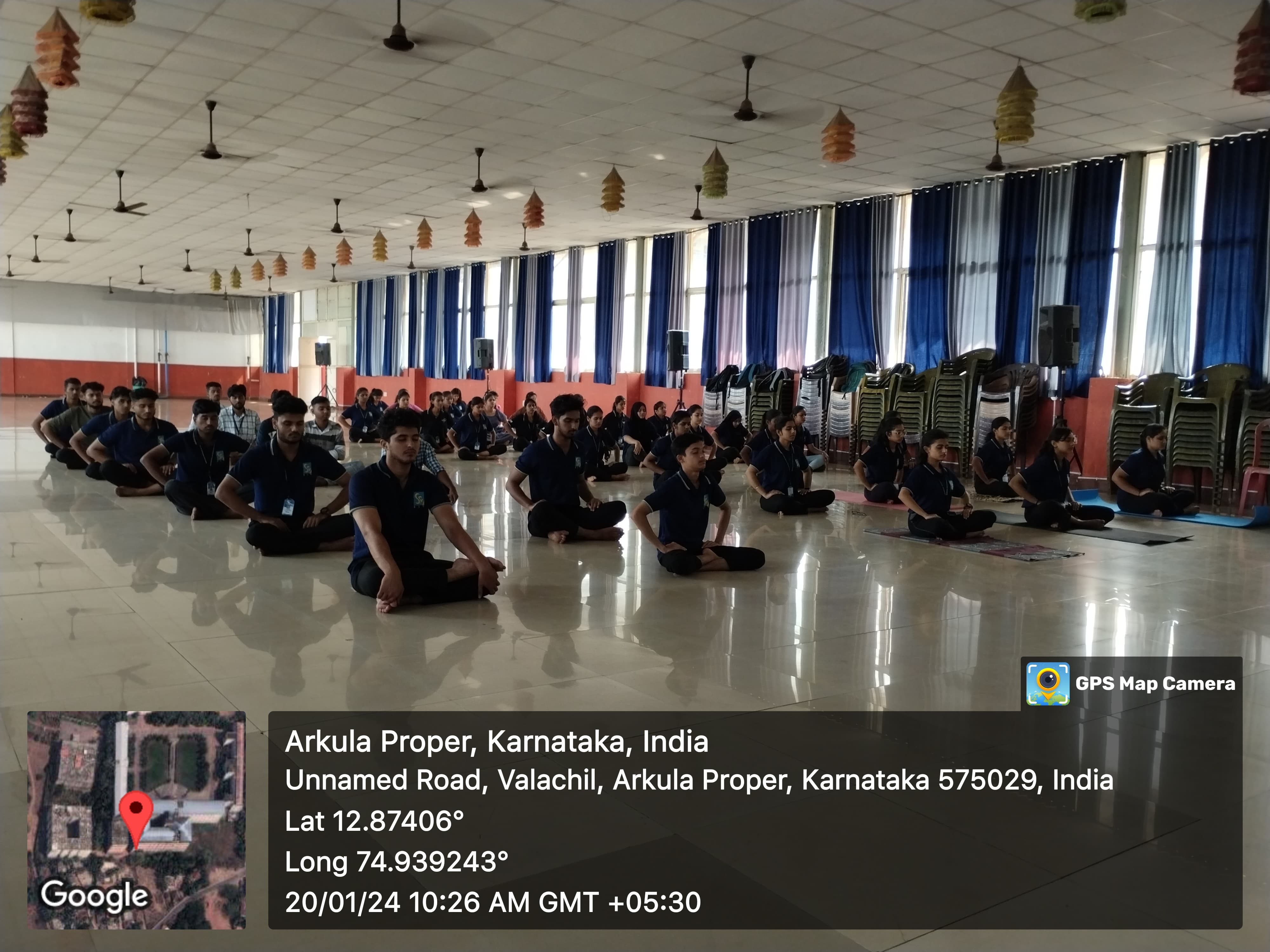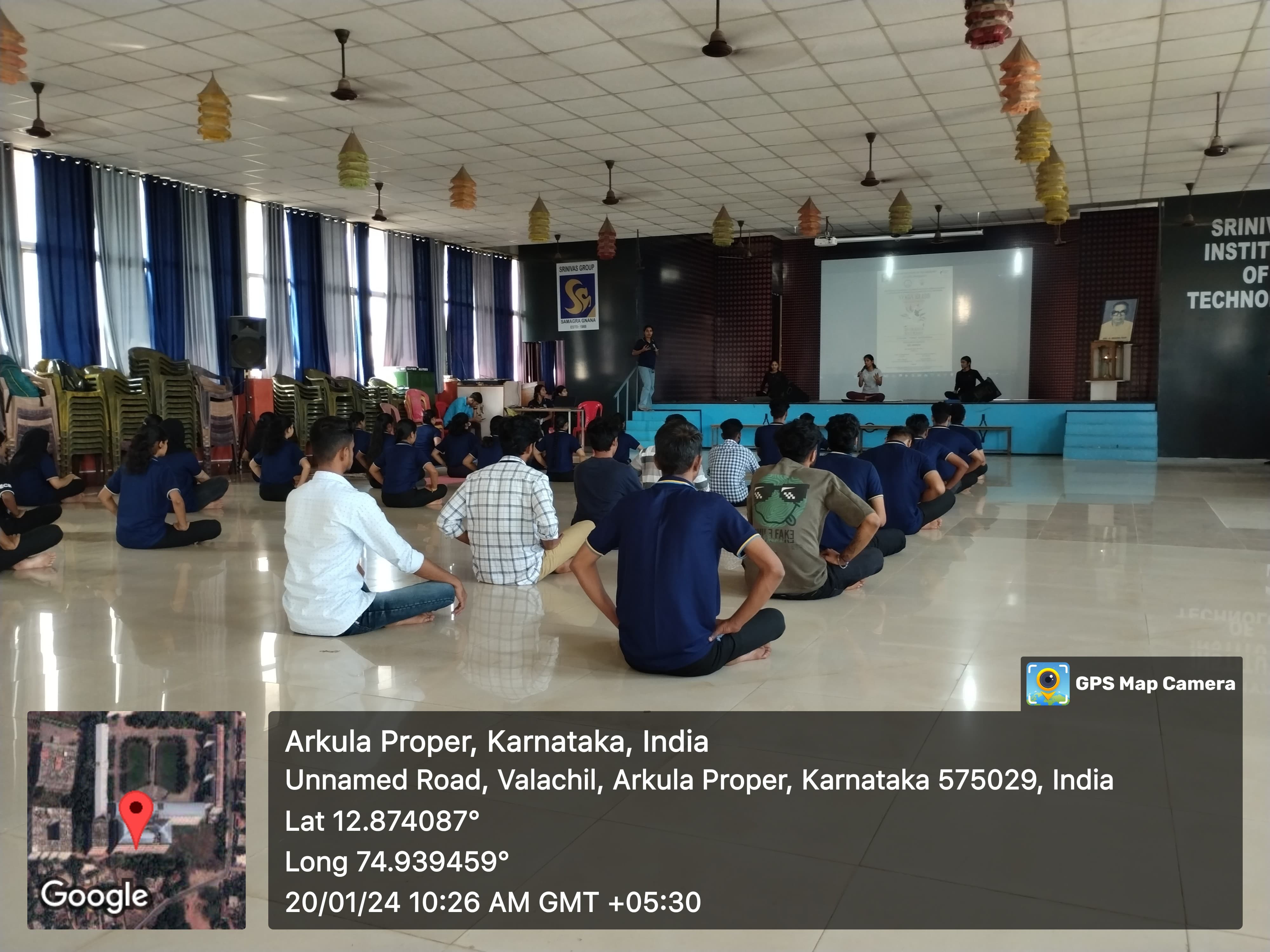 Yoga refers to a physical, mental, and spiritual practice that originated in ancient India. It encompasses a wide range of techniques and practices aimed at promoting overall well-being and harmony between the body, mind, and spirit. So Yoga Bliss: For Better Life was jointly organized by the Association of Artificial Intelligence & Data Science Educatee (AADE)and Association of Information Science Educatee (AISE) for students at Srinivas Institute of Technology, Mangaluru, on January 20, 2024.Mrs. Shruthi Pramith Resource person first explained to the students the value of yoga and how to adapt a healthy lifestyle. After that, the students received a yoga session for 2 hours. During the coursework, she also reminded the students to change their regular lifestyle and to practice yoga for growth.This program was supported by our beloved Principal Dr. Shrinivasa Mayya D. The program was successfully completed with the help of Prof. Nagaraja Hebbar N, Head of the Department, AI&DS, and Prof. Sudarshan K Head of the Department, IS&E. This event is coordinated by Prof. Sneha Bose, Association coordinator of AI&DS, Prof. Sowmya, Association coordinator of IS&E, and Prof.Bindya Yoga coordinator.