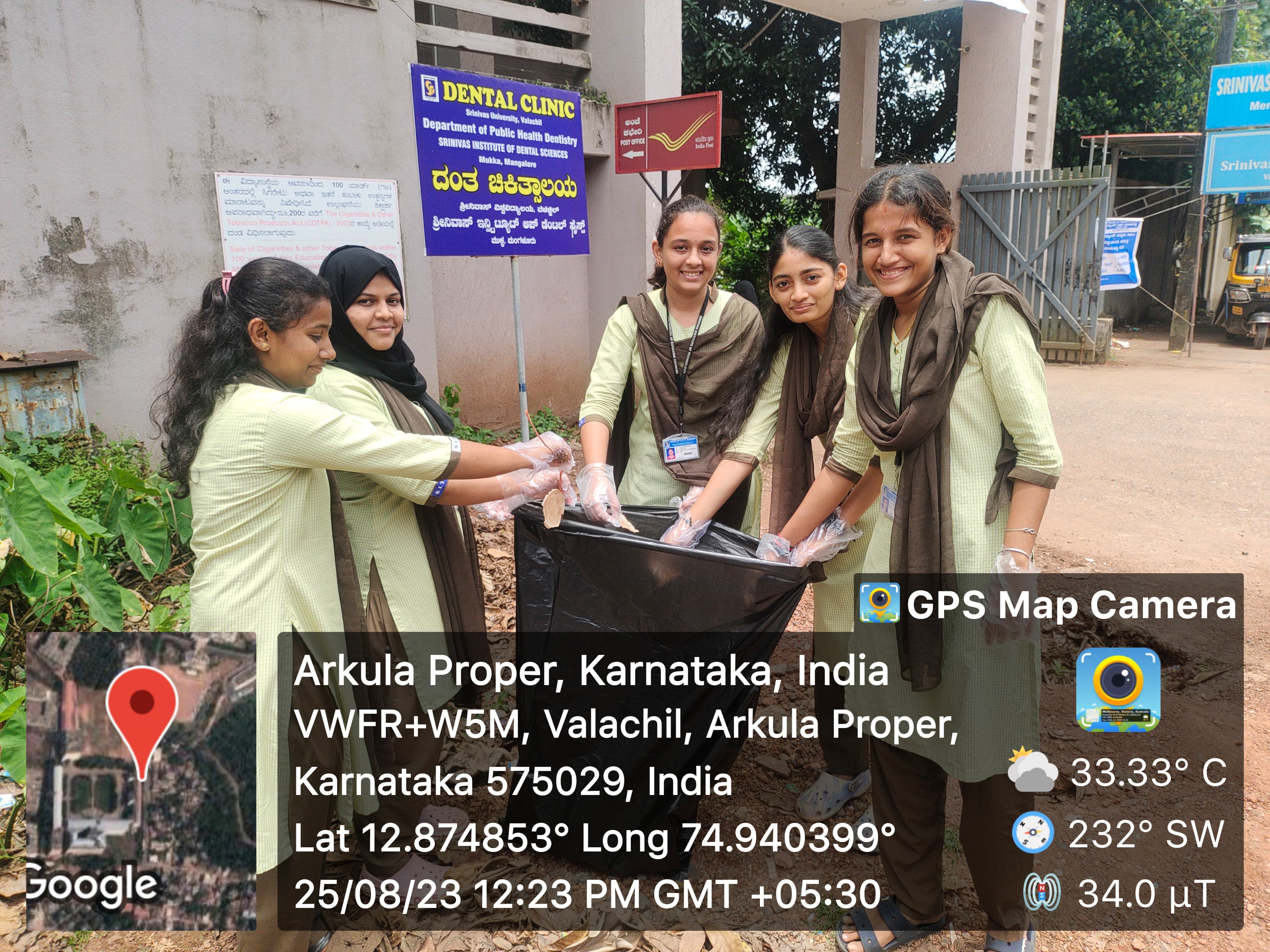 The Department of Computer Science and Engineering NSS organized an event on Swachh Bharat for 3rd year NSS students on 25th August 2023 at outside the Srinivas Institute of Technology, Mangaluru campus. Prof. Deepthi P. Dsouza, NSS coordinator along with Prof. Chaitra and Prof. Deeksha from Department of CSE had conducted this event. Prof. Ravishankara K, H.O.D, CS&E, motivated to conduct this event.